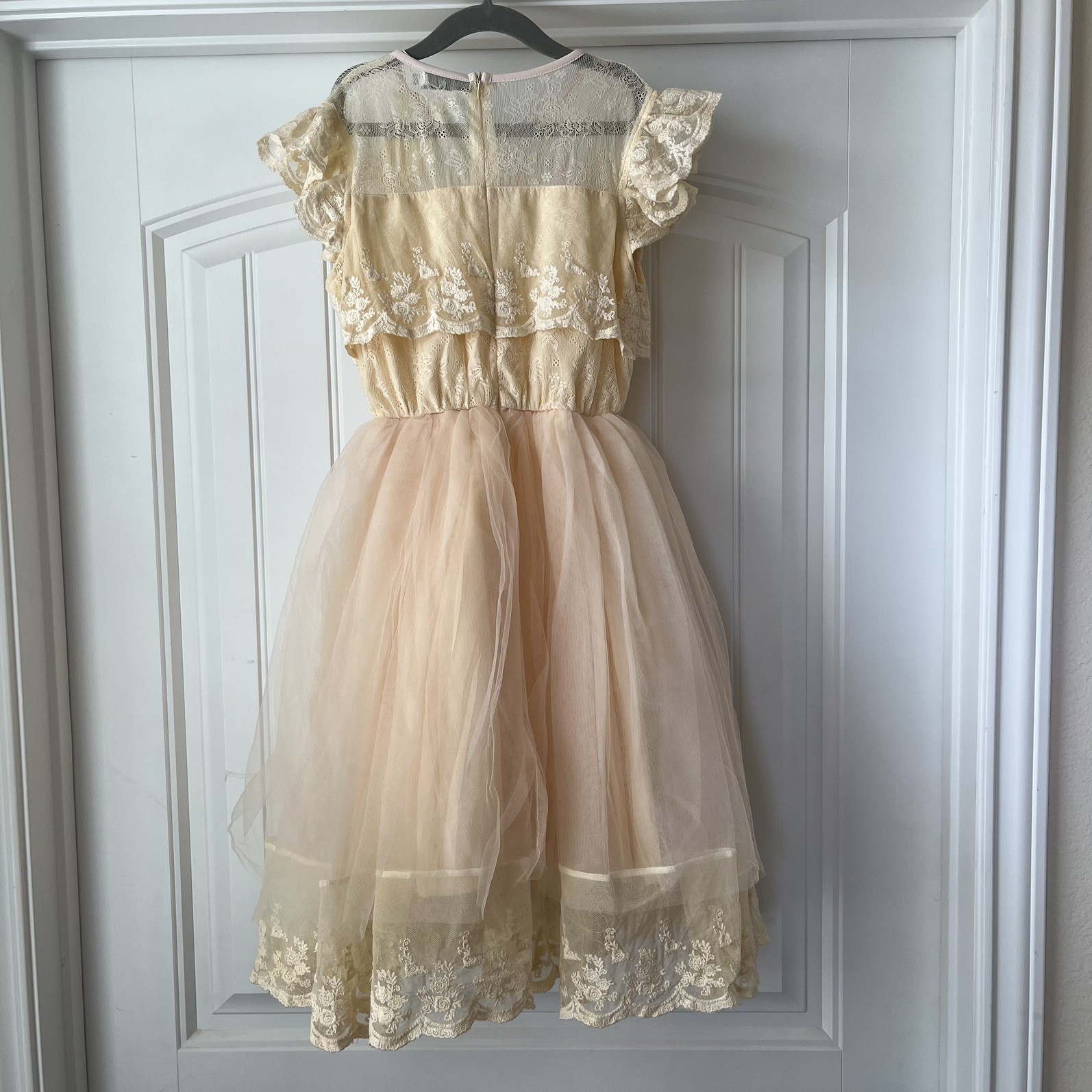 как выглядит NEW Trish Scully Girls Dress Size 12 Long Beige Pink Layered Lace Wedding Party фото