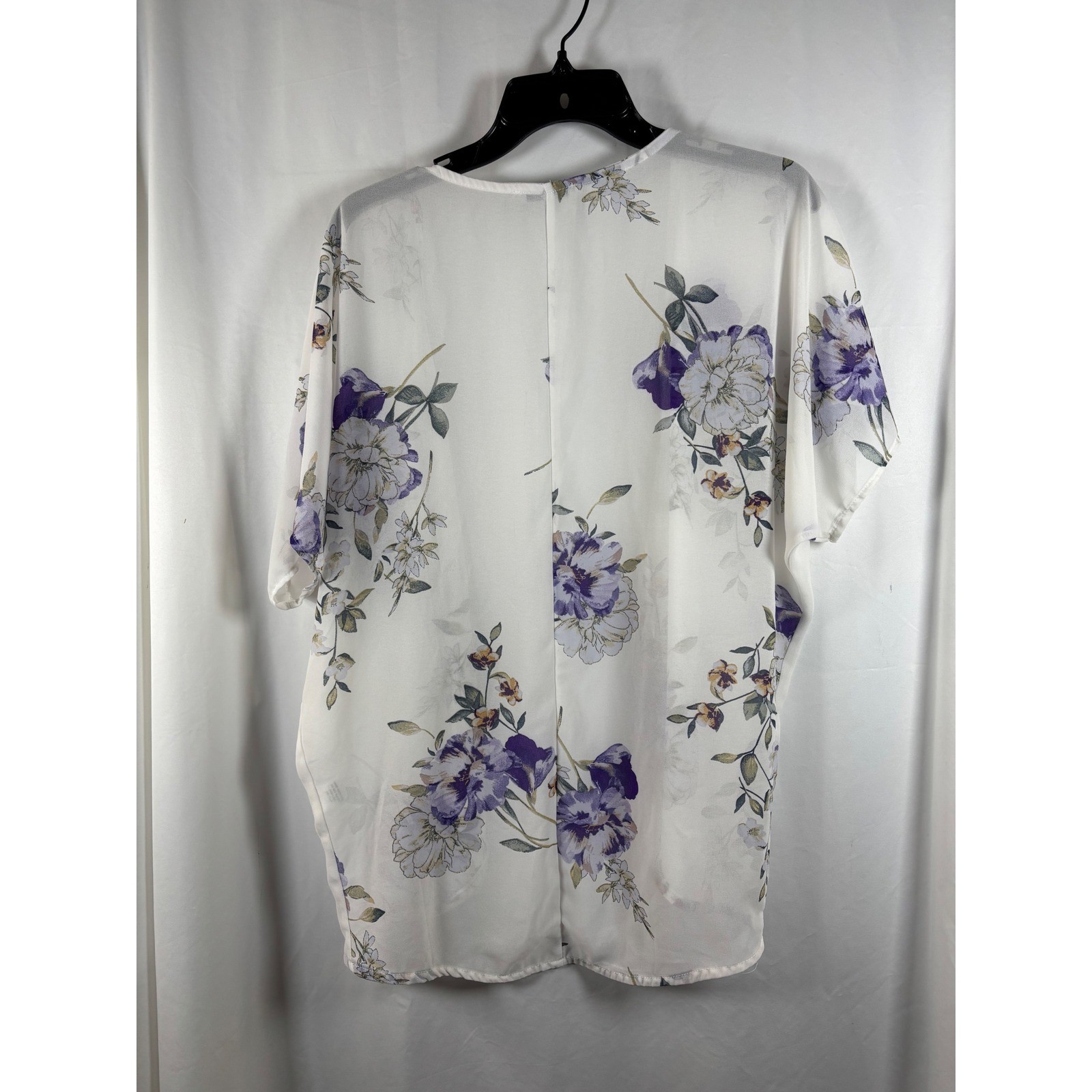 IRIS White Floral Kimono Cardigan Sheer Short Sleeve Women's Size S