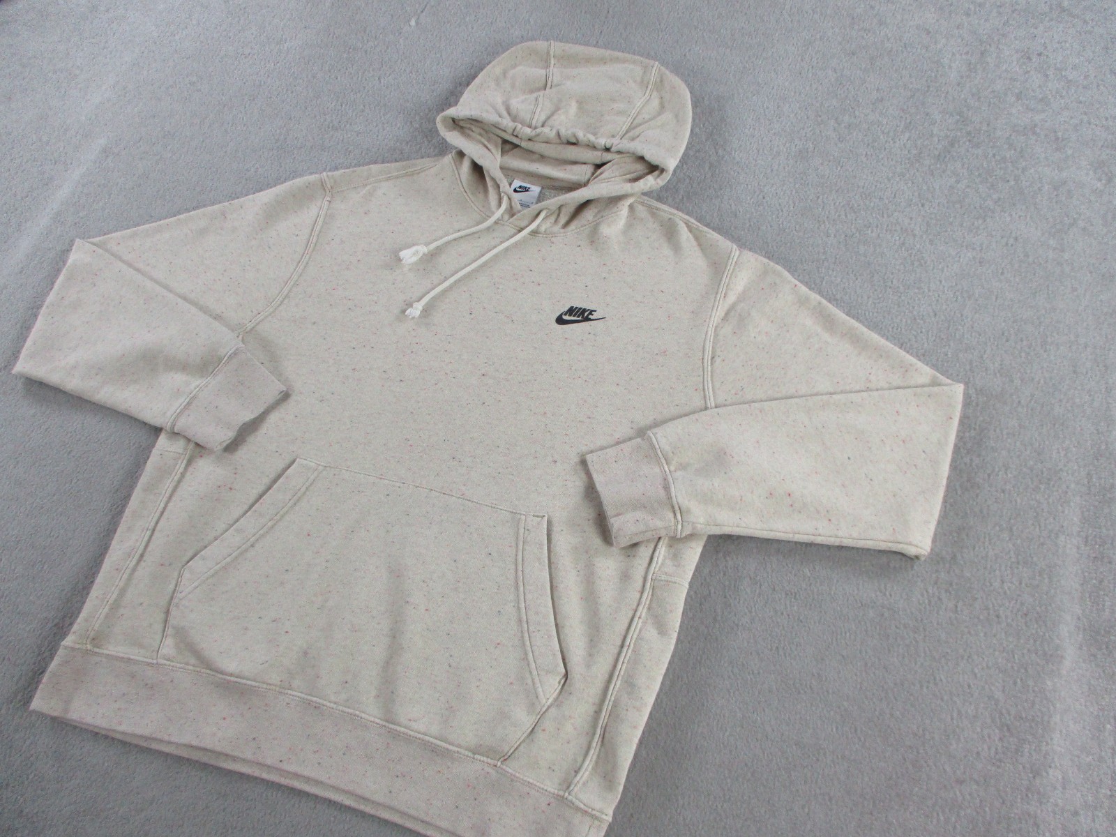 Nike Hoodie Mens Large Beige Speckled Club Fleece Sweatshirt Pullover Sweater