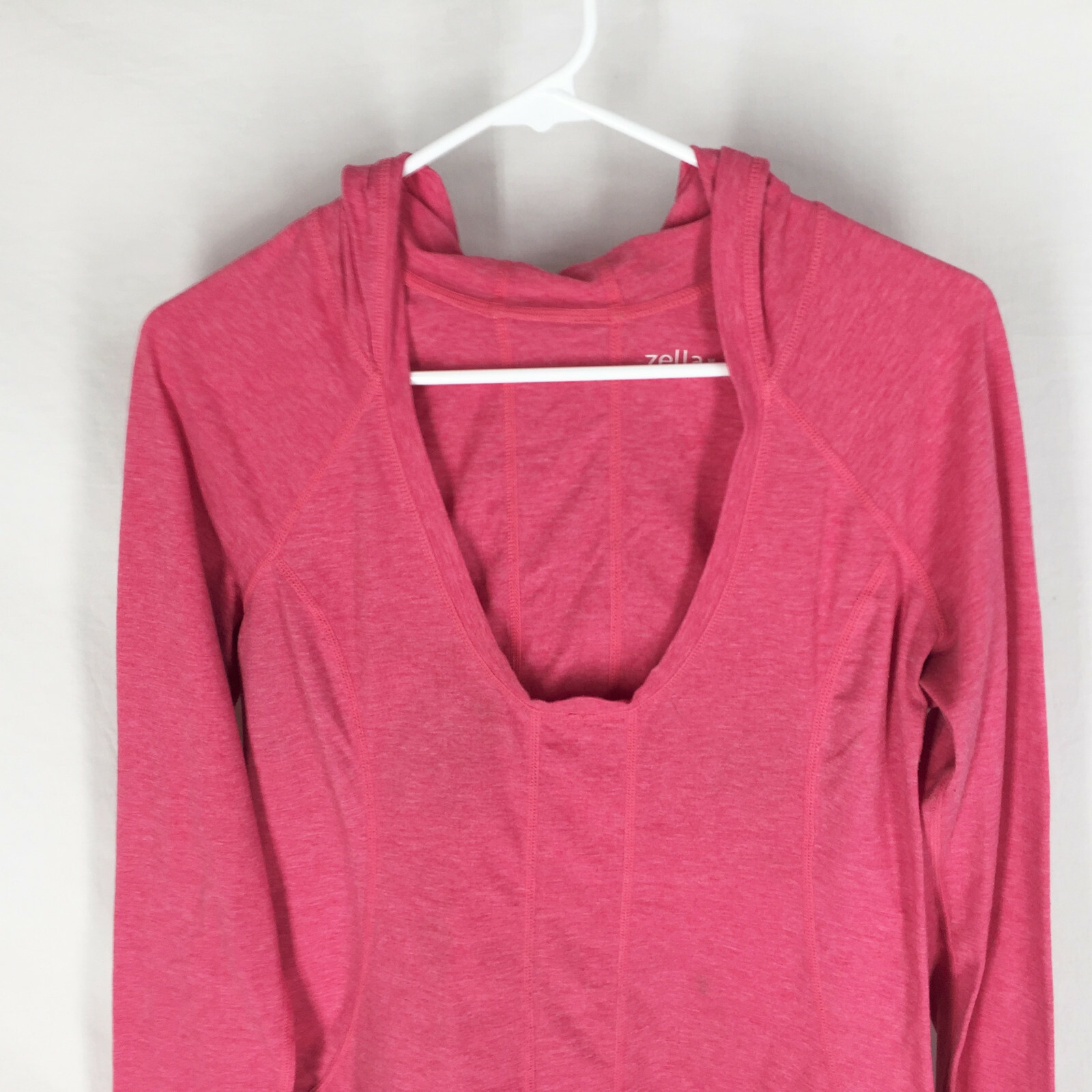 Zella Pink Yoga Jacket Size Medium Pullover Hooded Scoop Neck Long Sleeve
