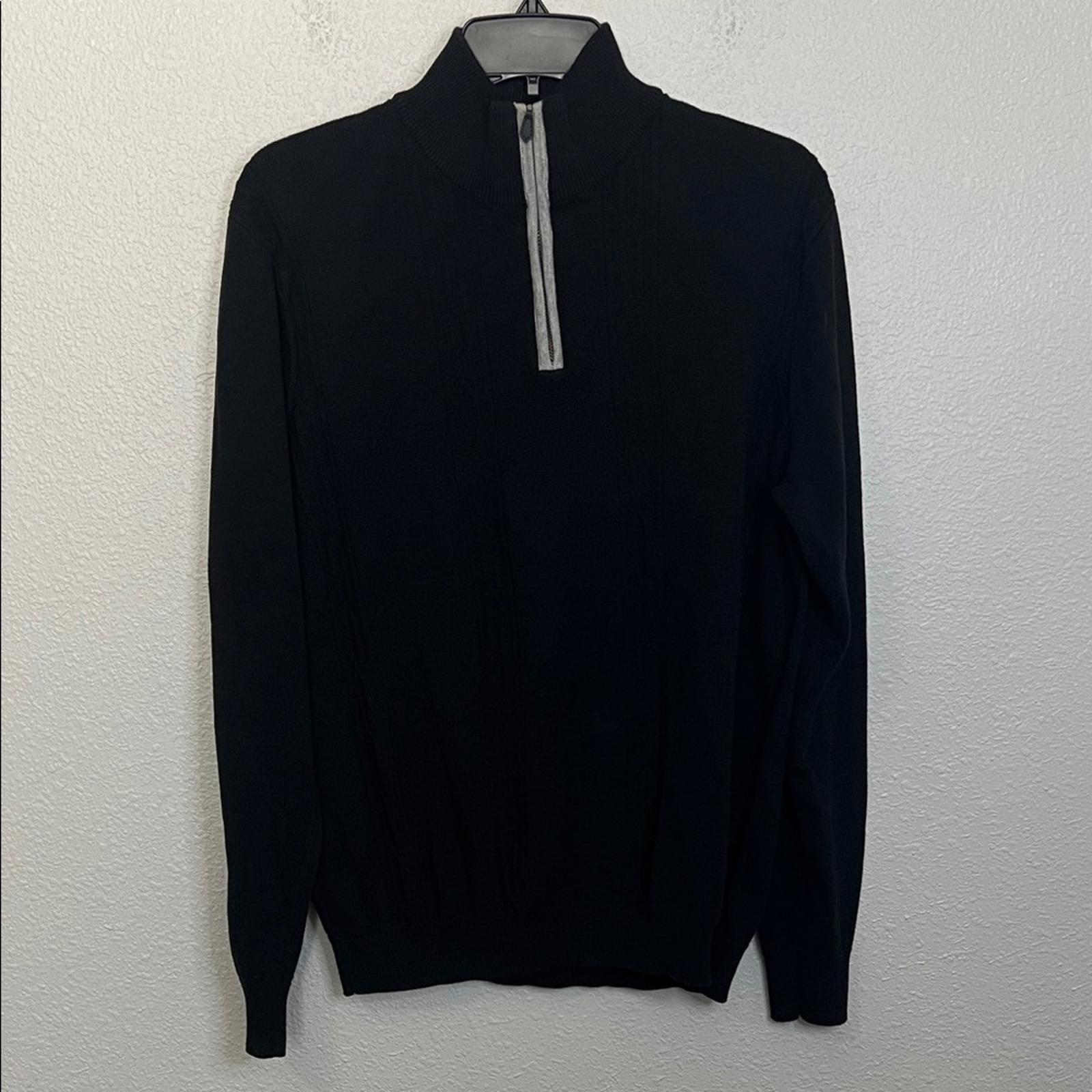 Perry Ellis Cotton Cable Knit Quarter Zip Black Size Medium