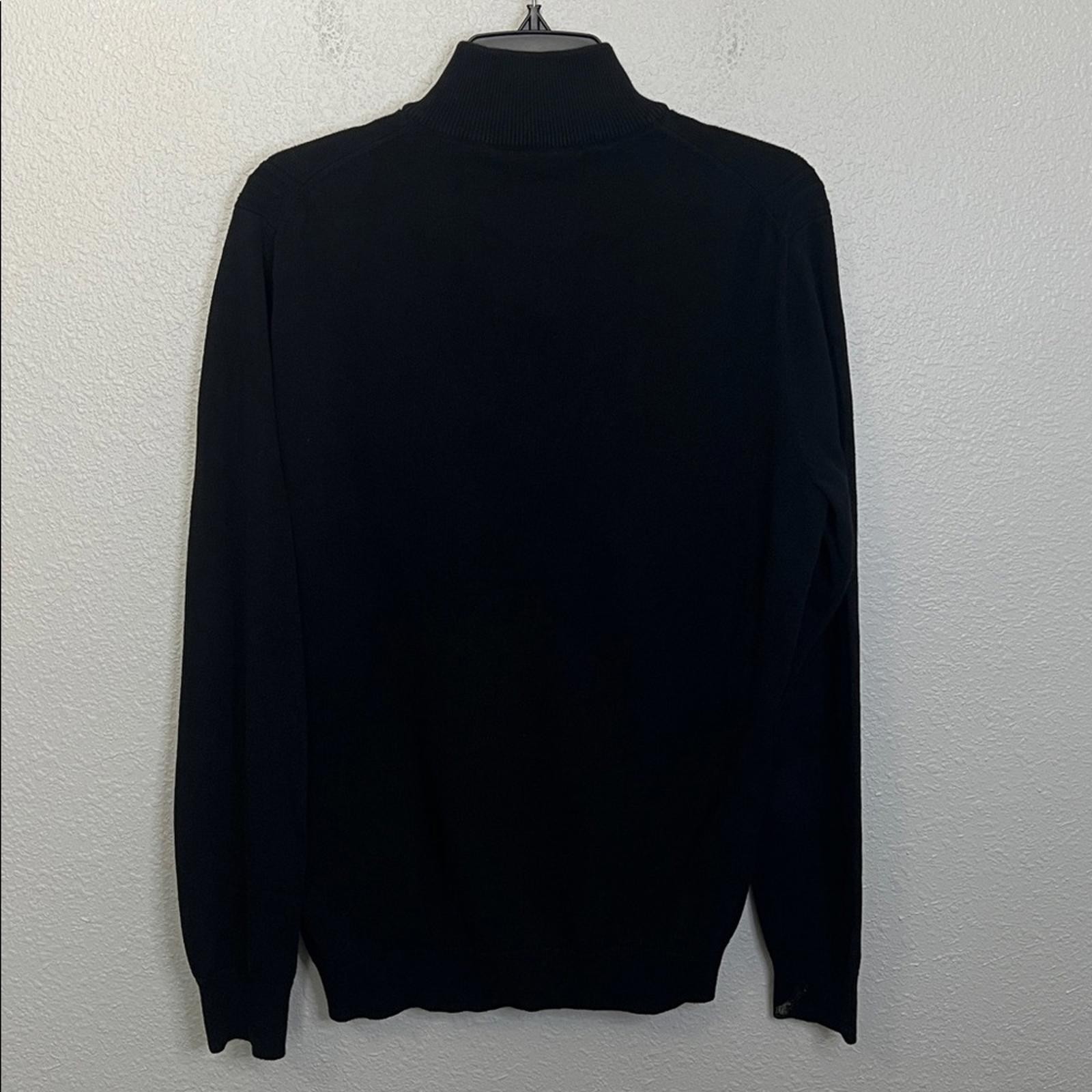 как выглядит Perry Ellis Cotton Cable Knit Quarter Zip Black Size Medium фото