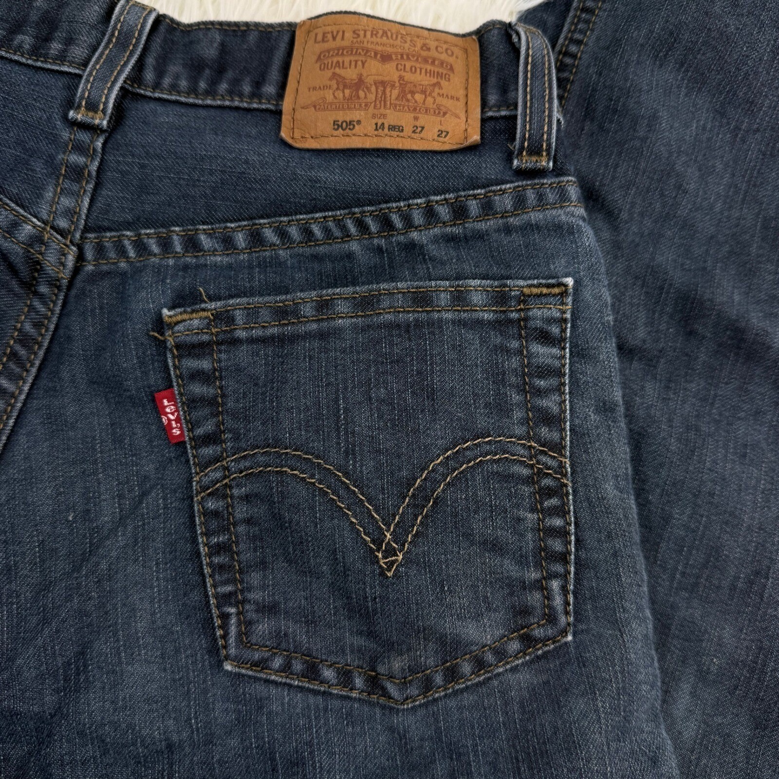 как выглядит Levis 505 Straight Leg Dark Wash Denim Jeans Boys Size 14 Waist 27 Regular фото