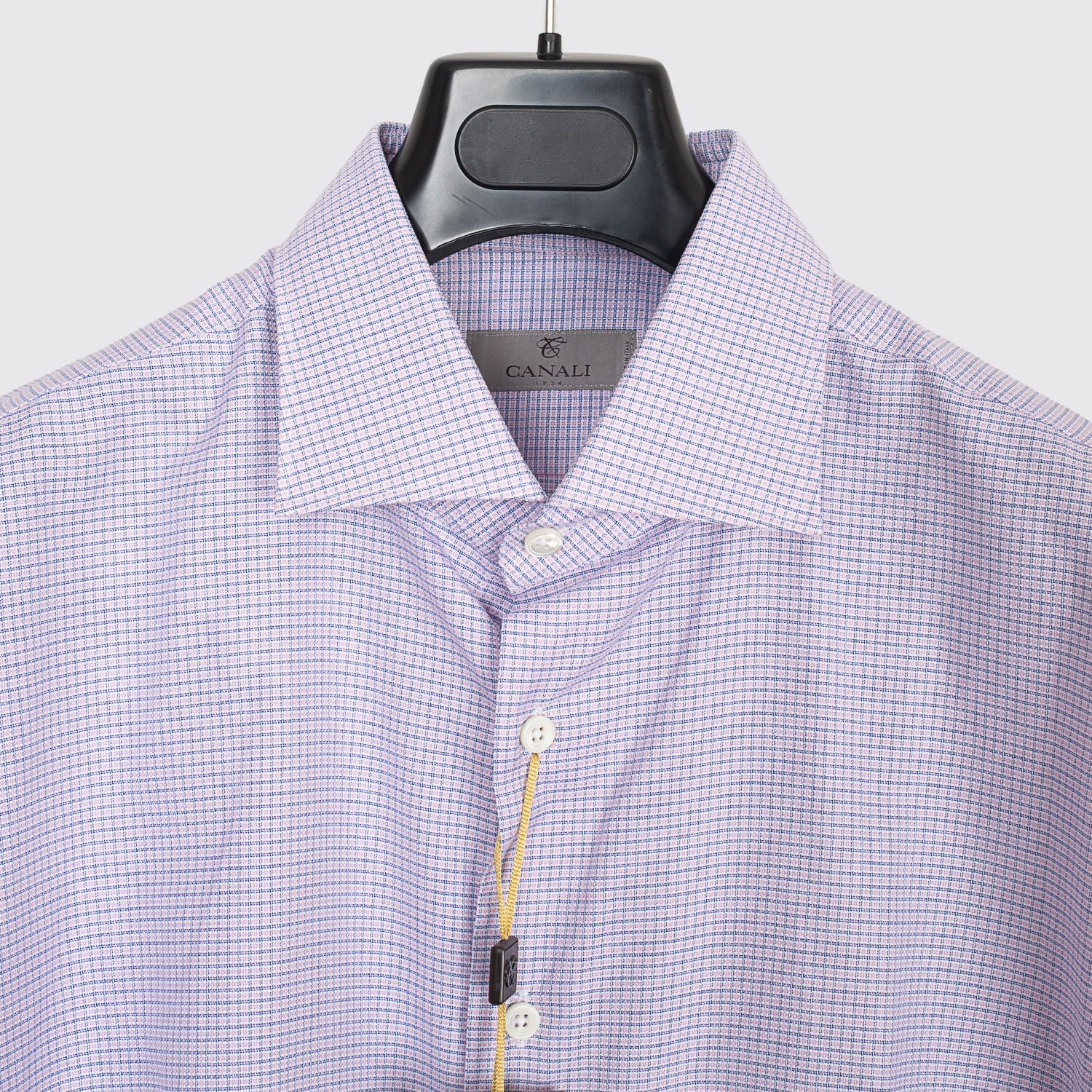 Canali Dress Shirt Size 17.5 44cm Pink Blue Grid Woven Cotton Made in Italy