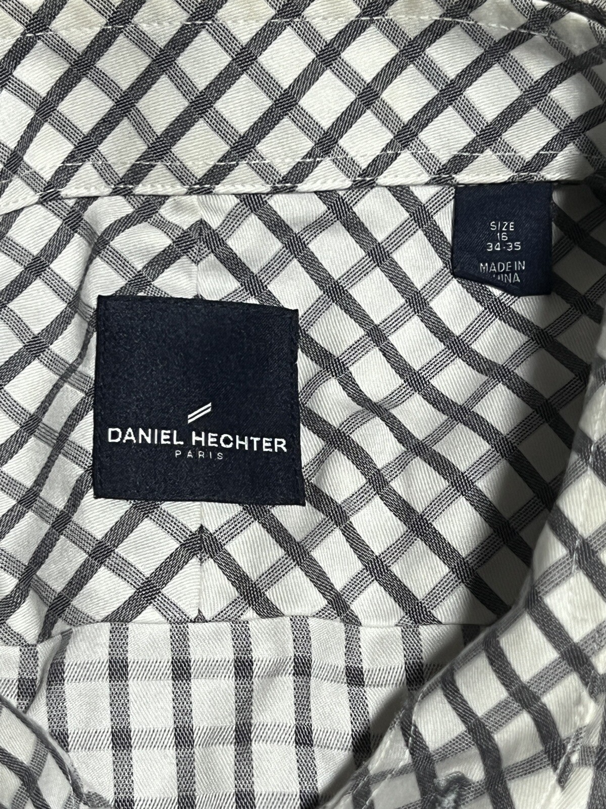 DANIEL HECHTER Paris Men's Size 16 34-35 Button Down Long Sleeve Checkered Shirt