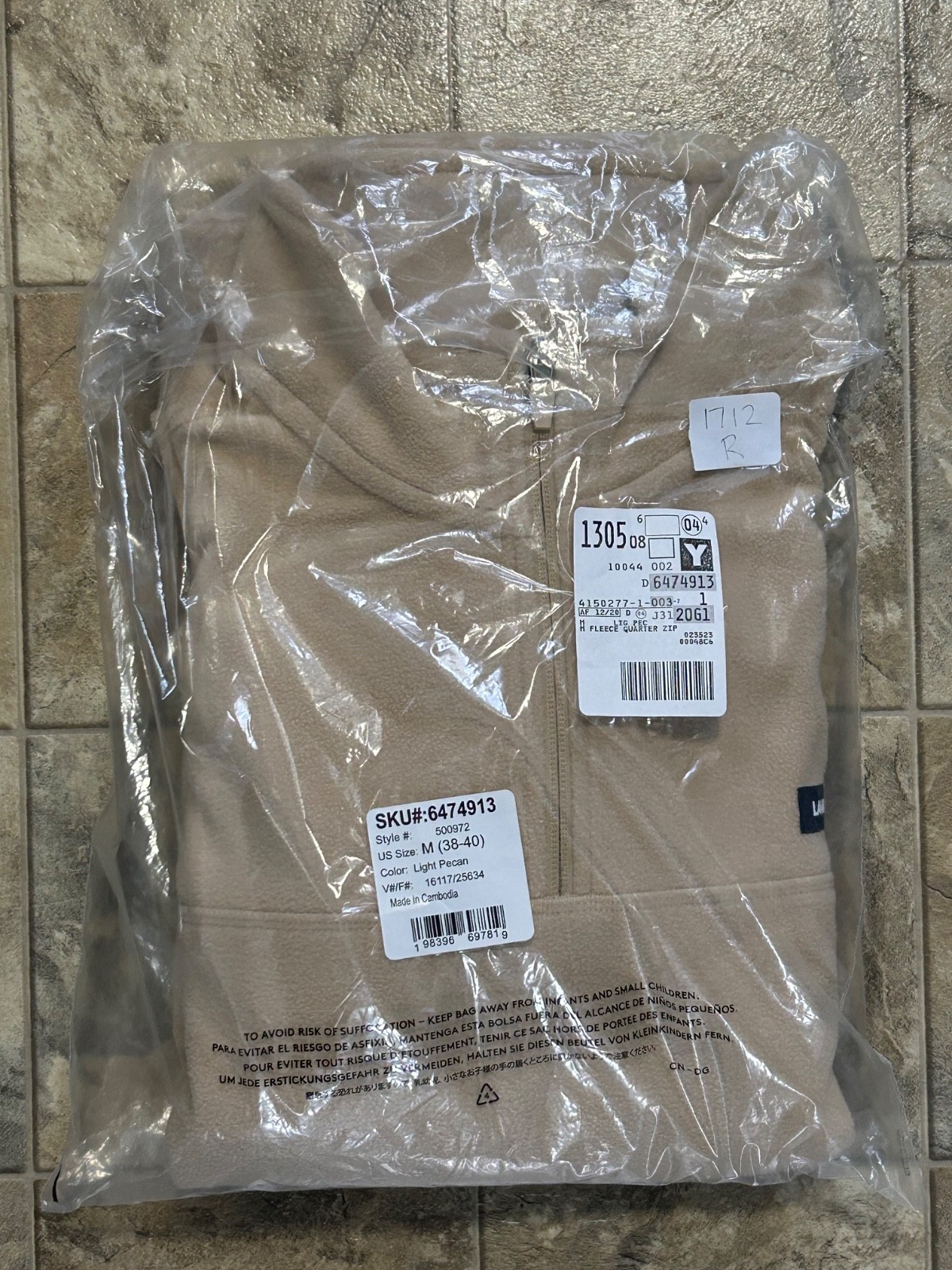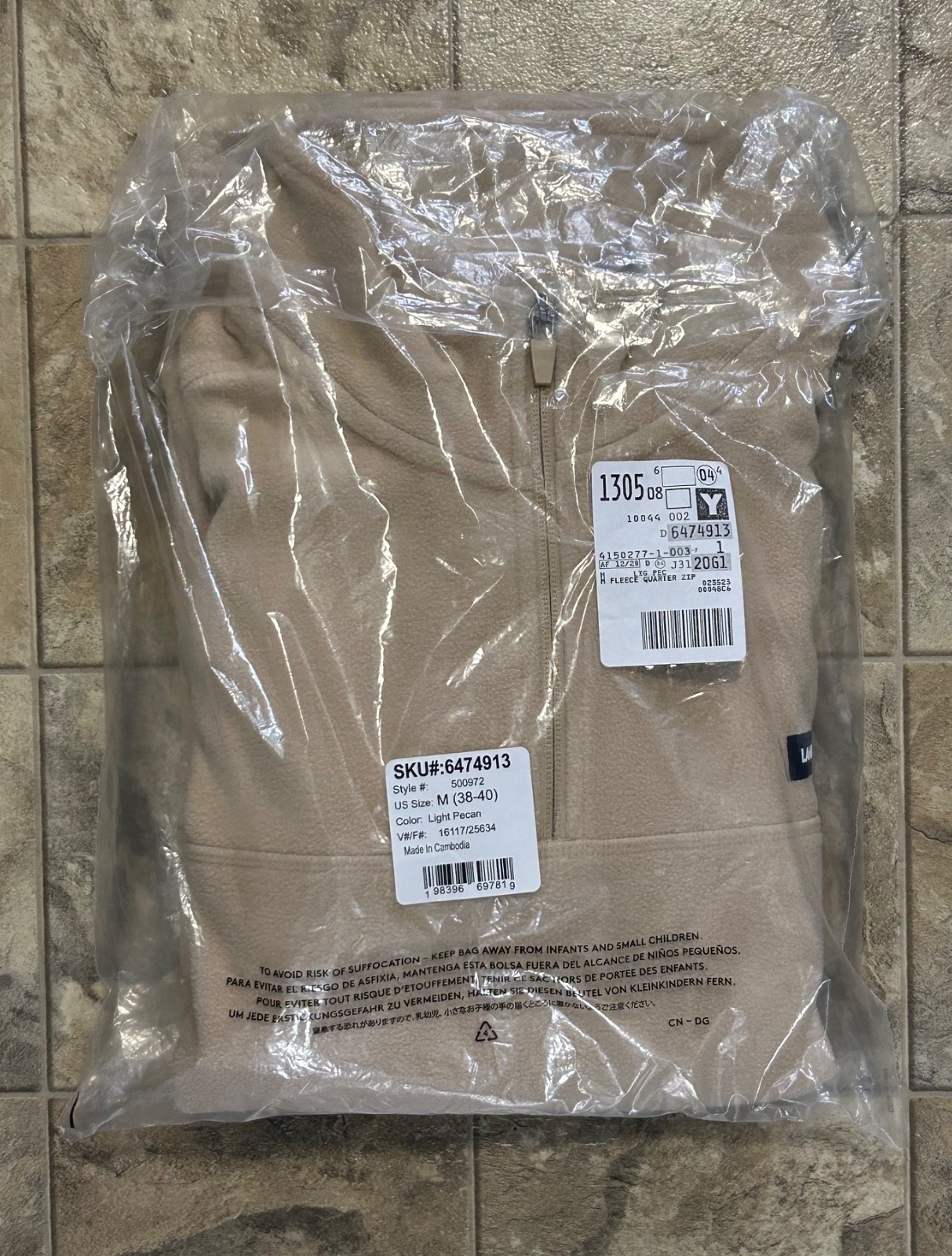 Lands End Mens M Light Pecan Beige Fleece Quarter Zip Pullover Long Sleeve NWT