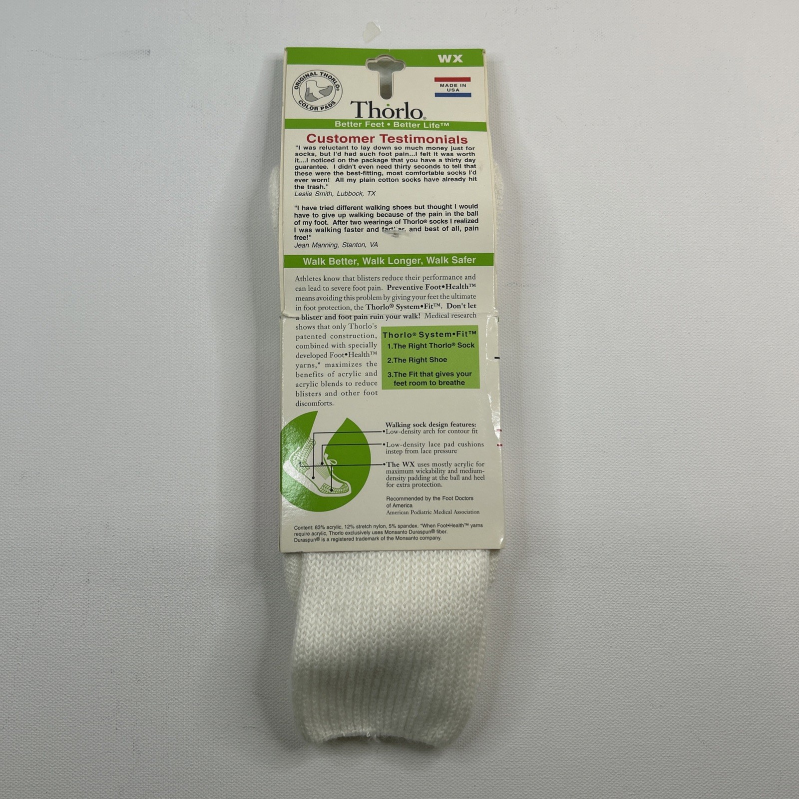 VTG Socks Thorlo Acrylic Walking 10-13 Crew White 90s WX-13 NOS ThorLon L Sport.