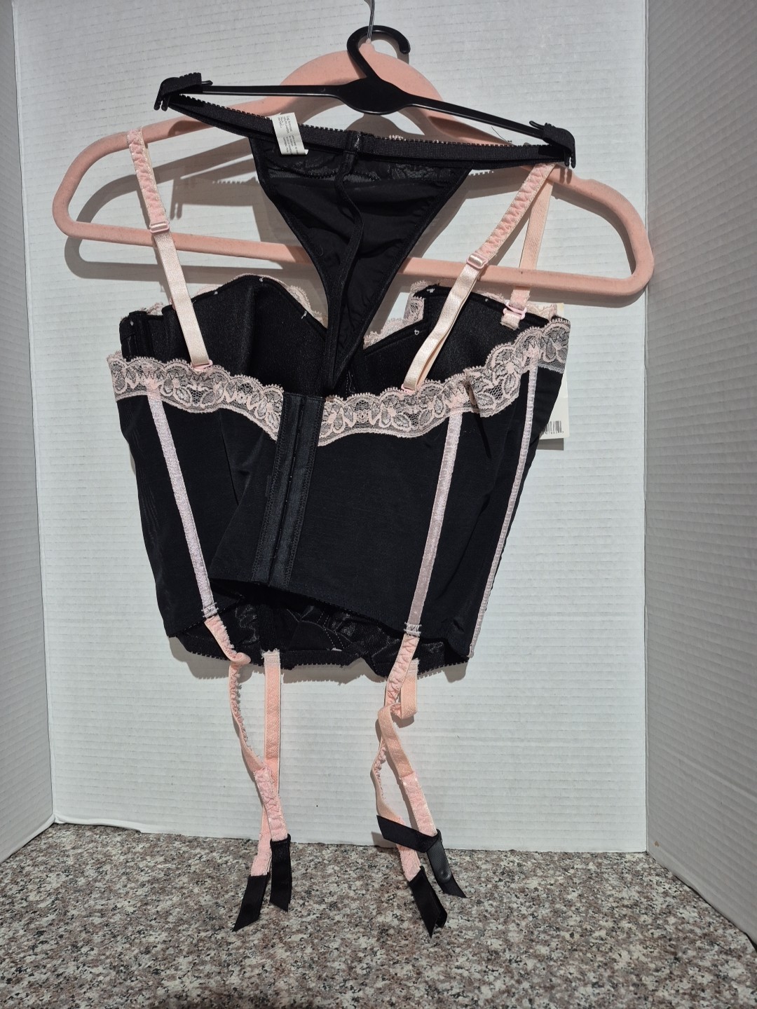 как выглядит Leg Avenue 81030 Black/Pink Bustier W Garter G String SIZE LARGE фото