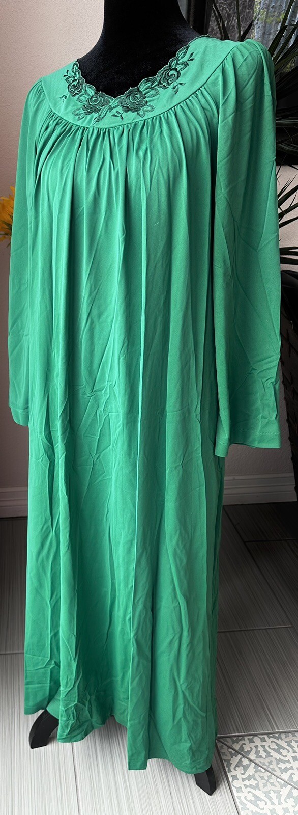 как выглядит Vintage Shadowline Turquoise Green Long Sleeve Lace Floral Appliqu Nightgown S фото