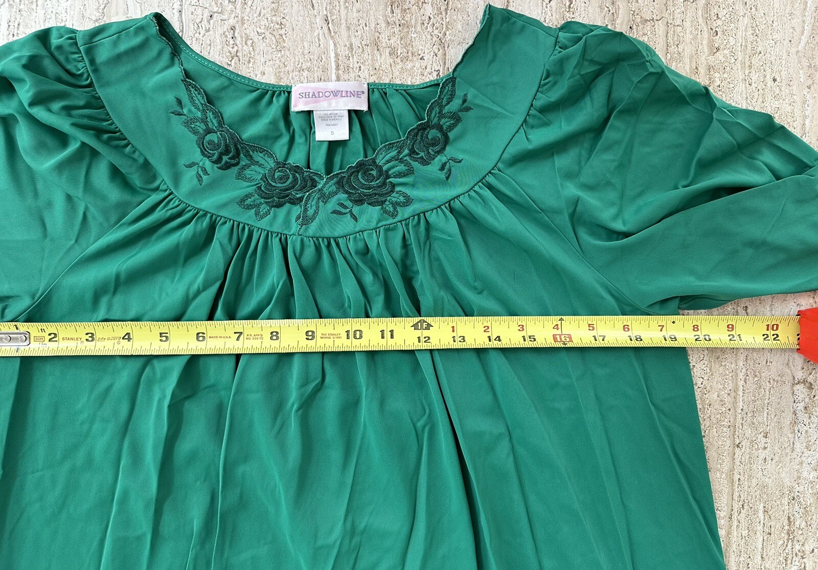 Vintage Shadowline Turquoise Green Long Sleeve Lace Floral Appliqu Nightgown S