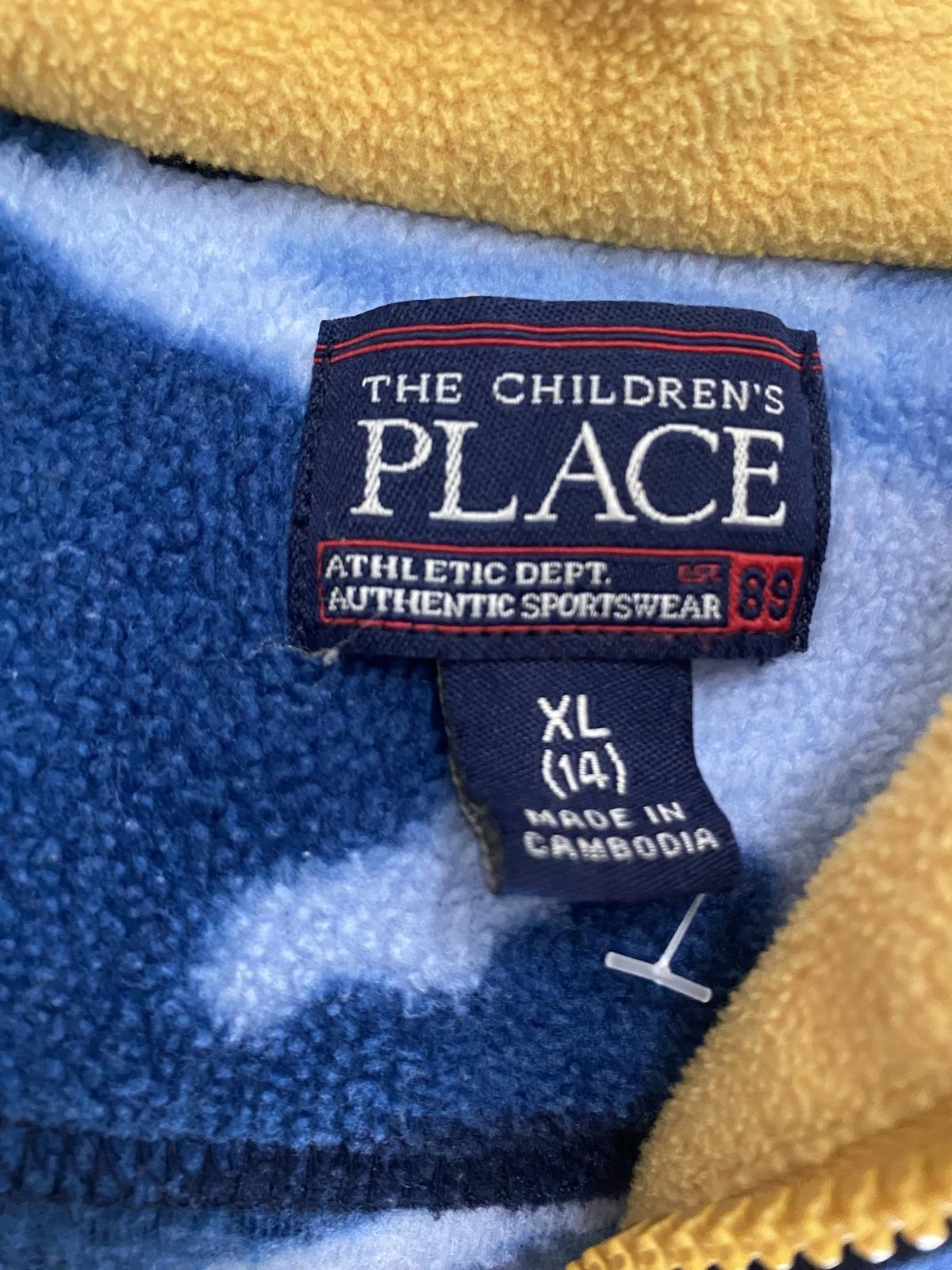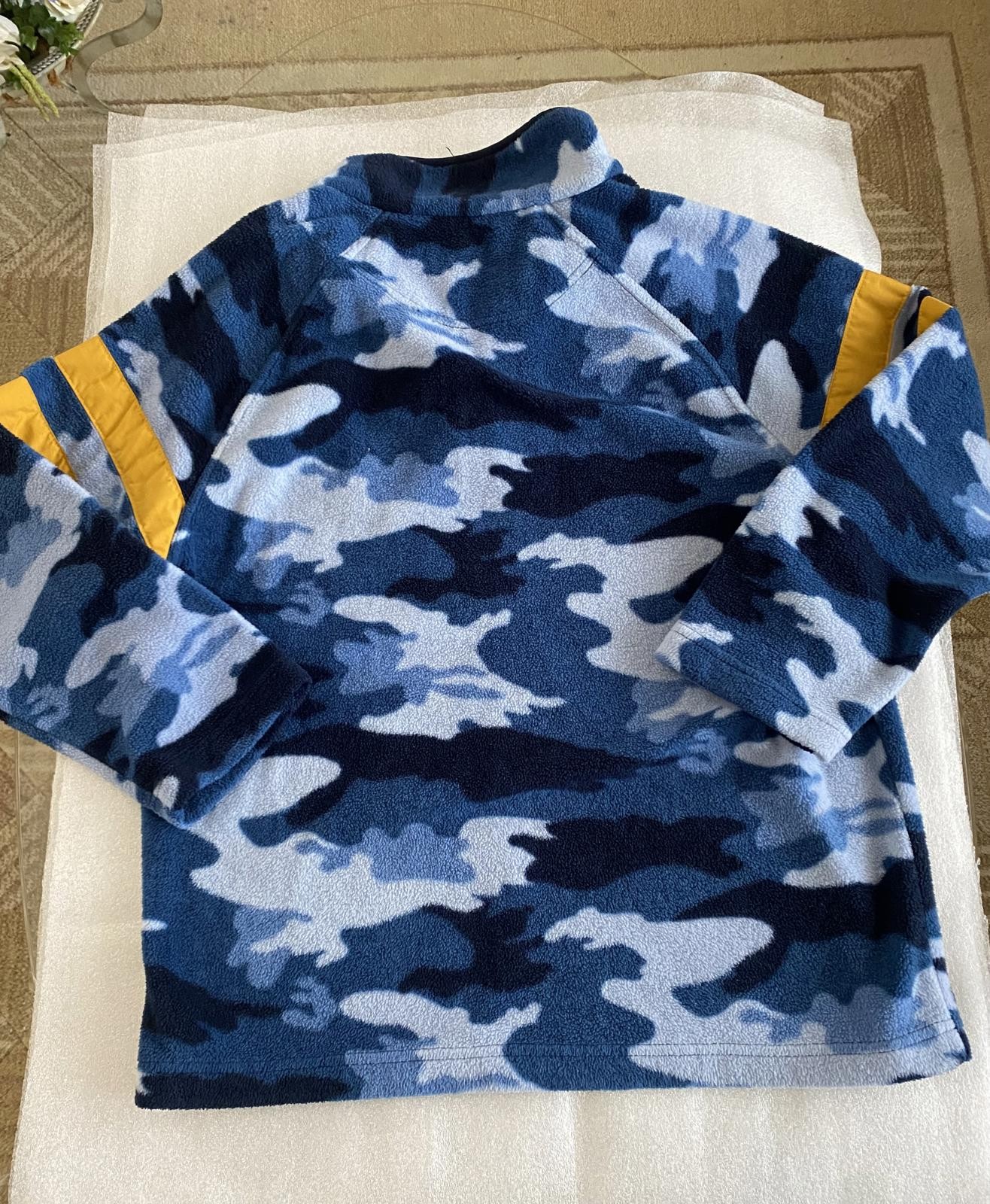 как выглядит Childrens Place Boys Blue Camouflage Fleece Pullover with Yellow Accents XL фото