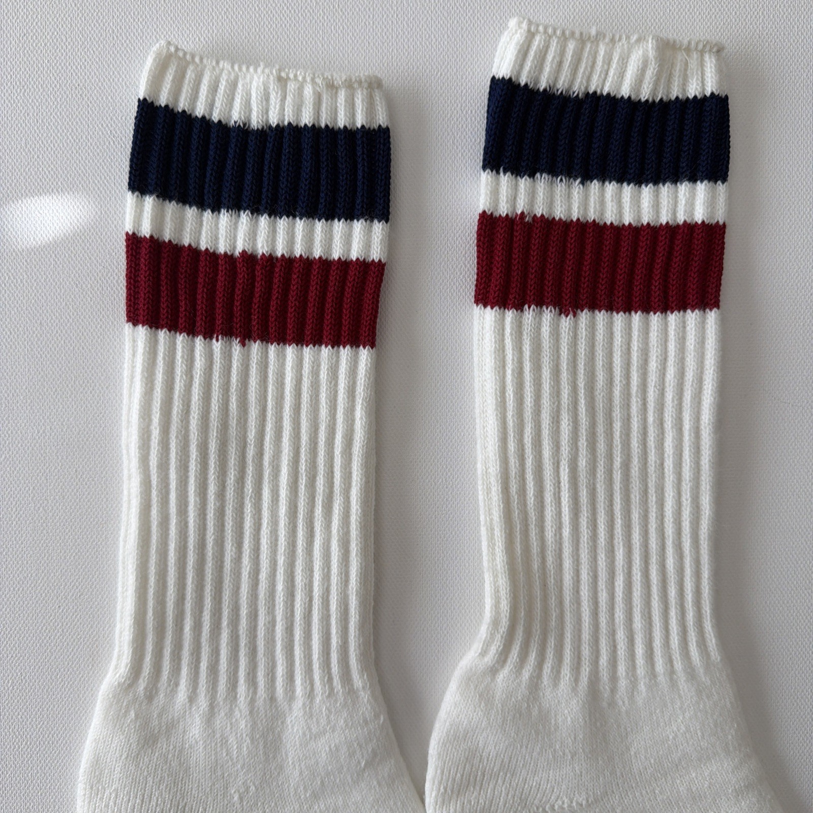 как выглядит Vintage Socks 10-13 Striped 1980s NOS White Blue Burgundy USA Sports фото