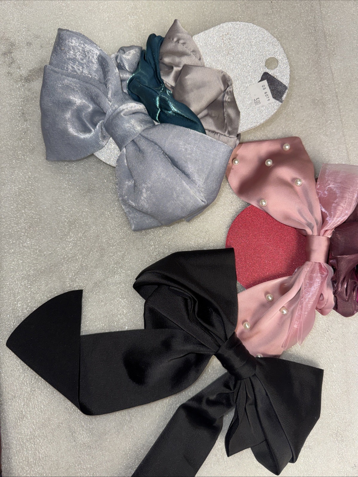 Women Oversized Hair Bows Satin Clips with Pearl Accents