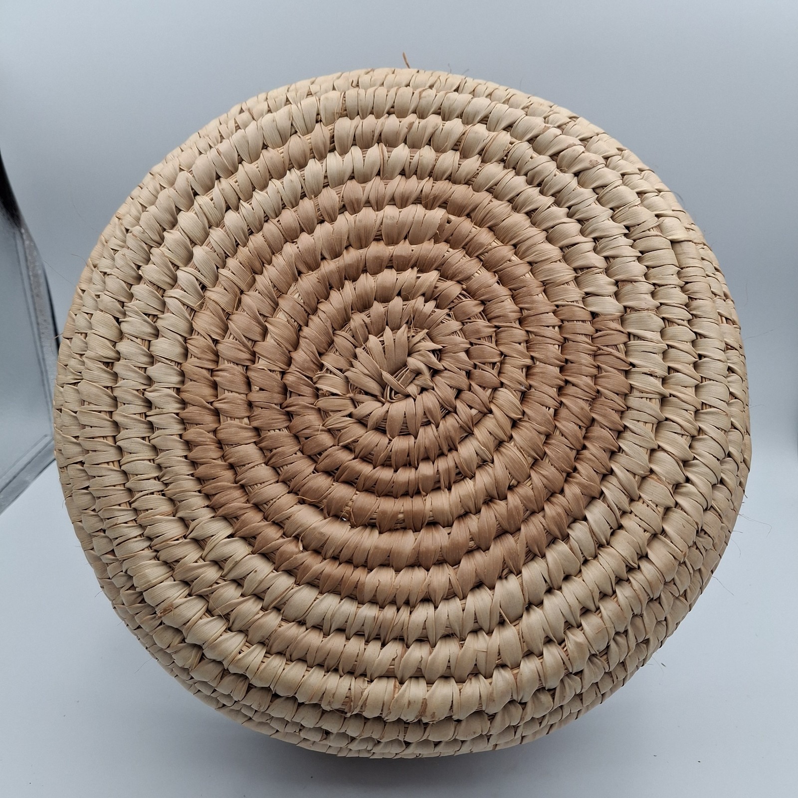 • African Basket Coil Woven Open Weave Handle Hausa Style Afrohemian 13"x14" Vtg