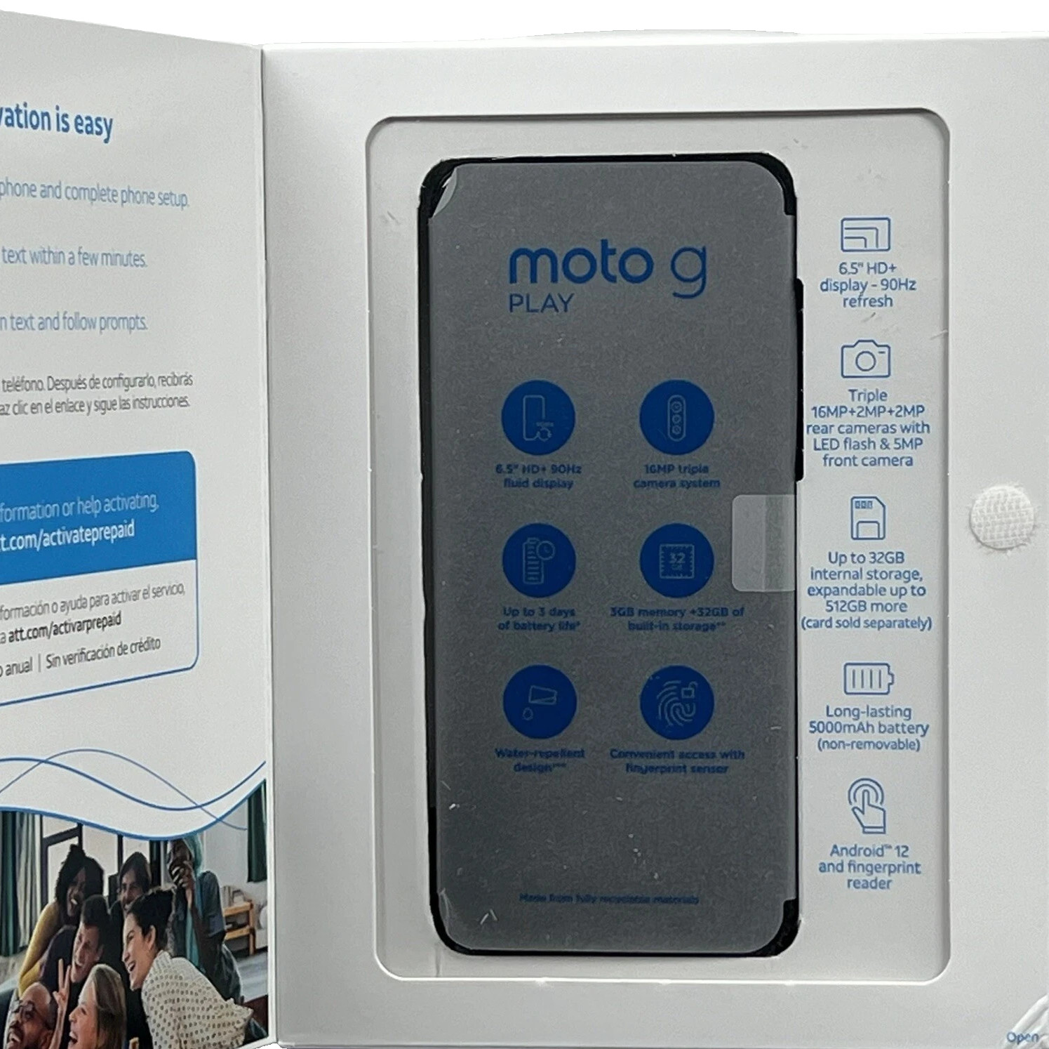 Motorola Moto G 5G 64GB 6.5Smartphone Ink Blue - AT T Prepaid - New Sealed