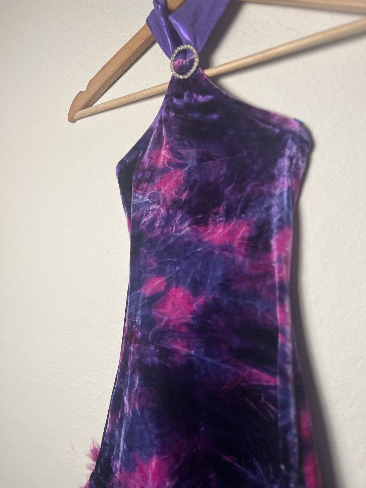 Georgie Girls Dance Costume Child M Purple/Pink Velvet Feather Hem Skate