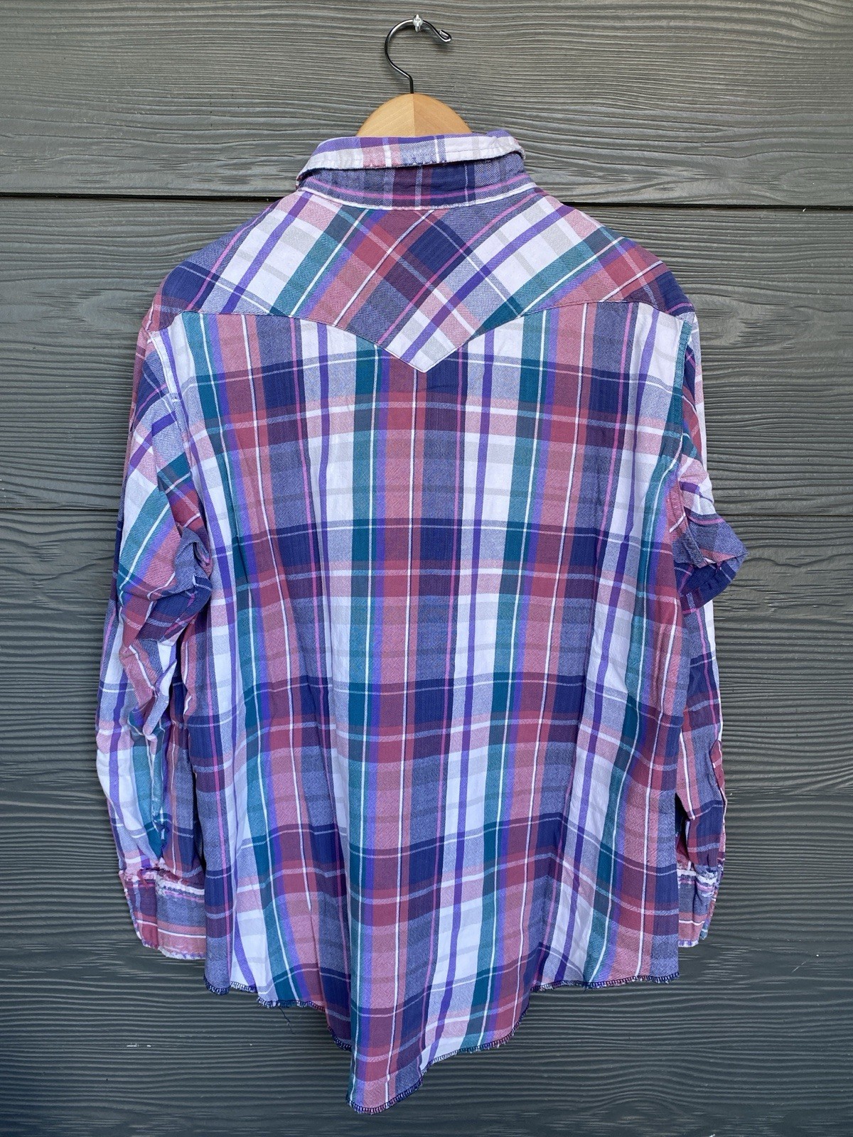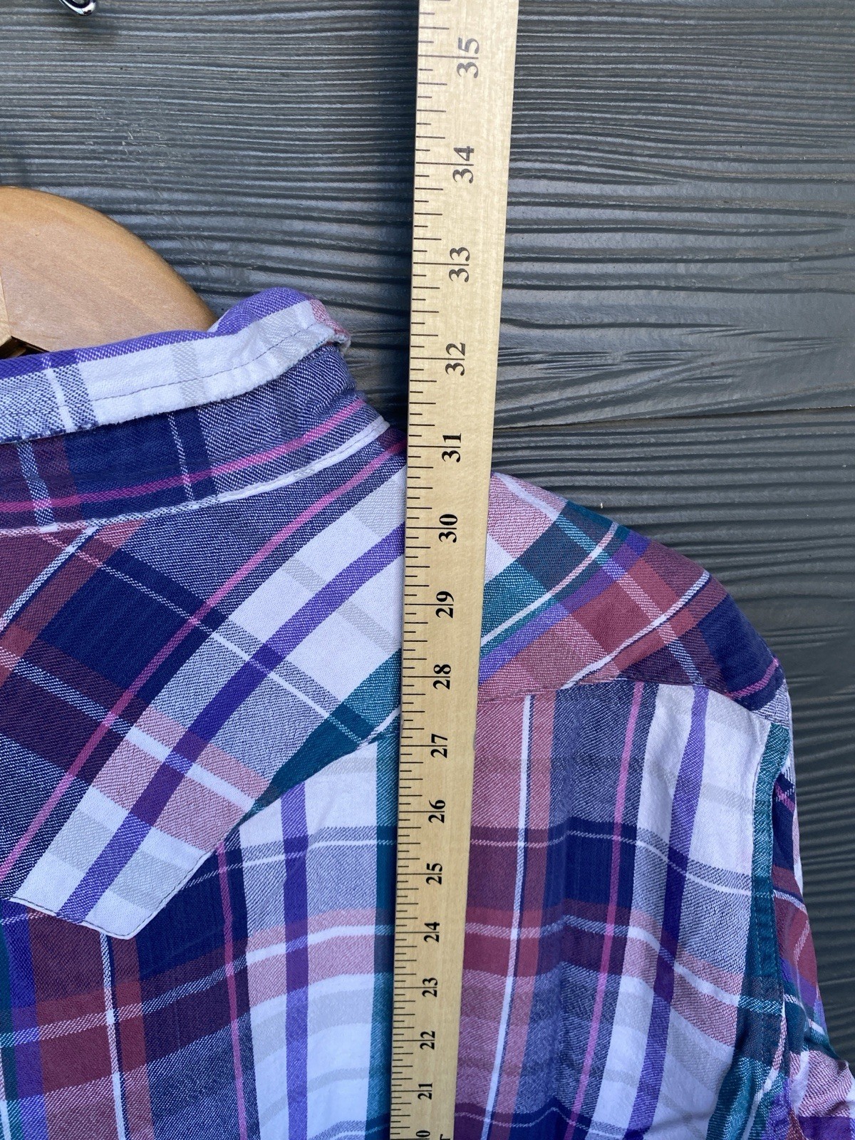 VTG 90s Wrangler Western Pearl Snap Plaid Shirt X-Long Tails 18-35 2XL USA Made