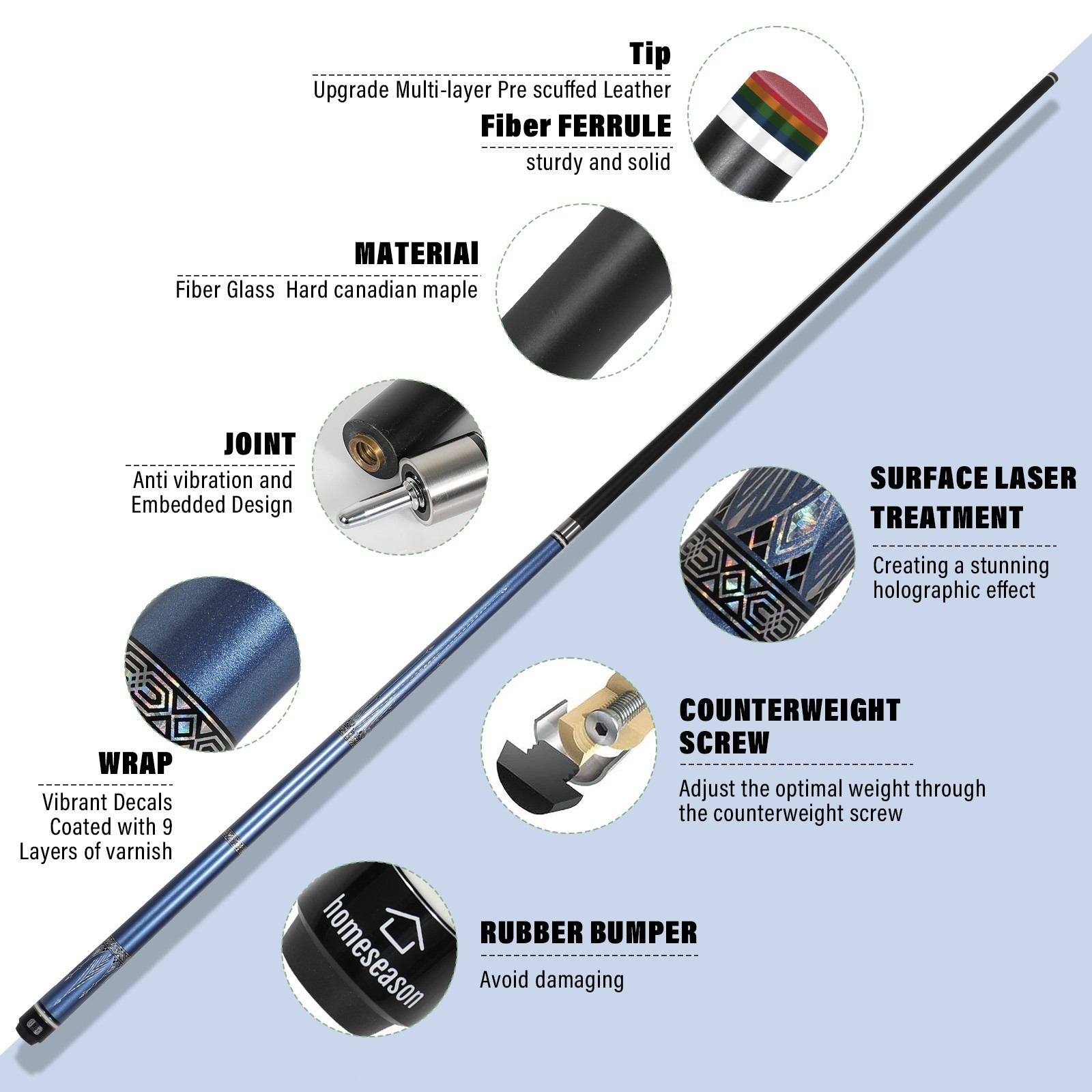 как выглядит Fiber Glass Pool Cue Stick 58" Billiard Cue Sticks 19oz Pool Sticks with Cue фото