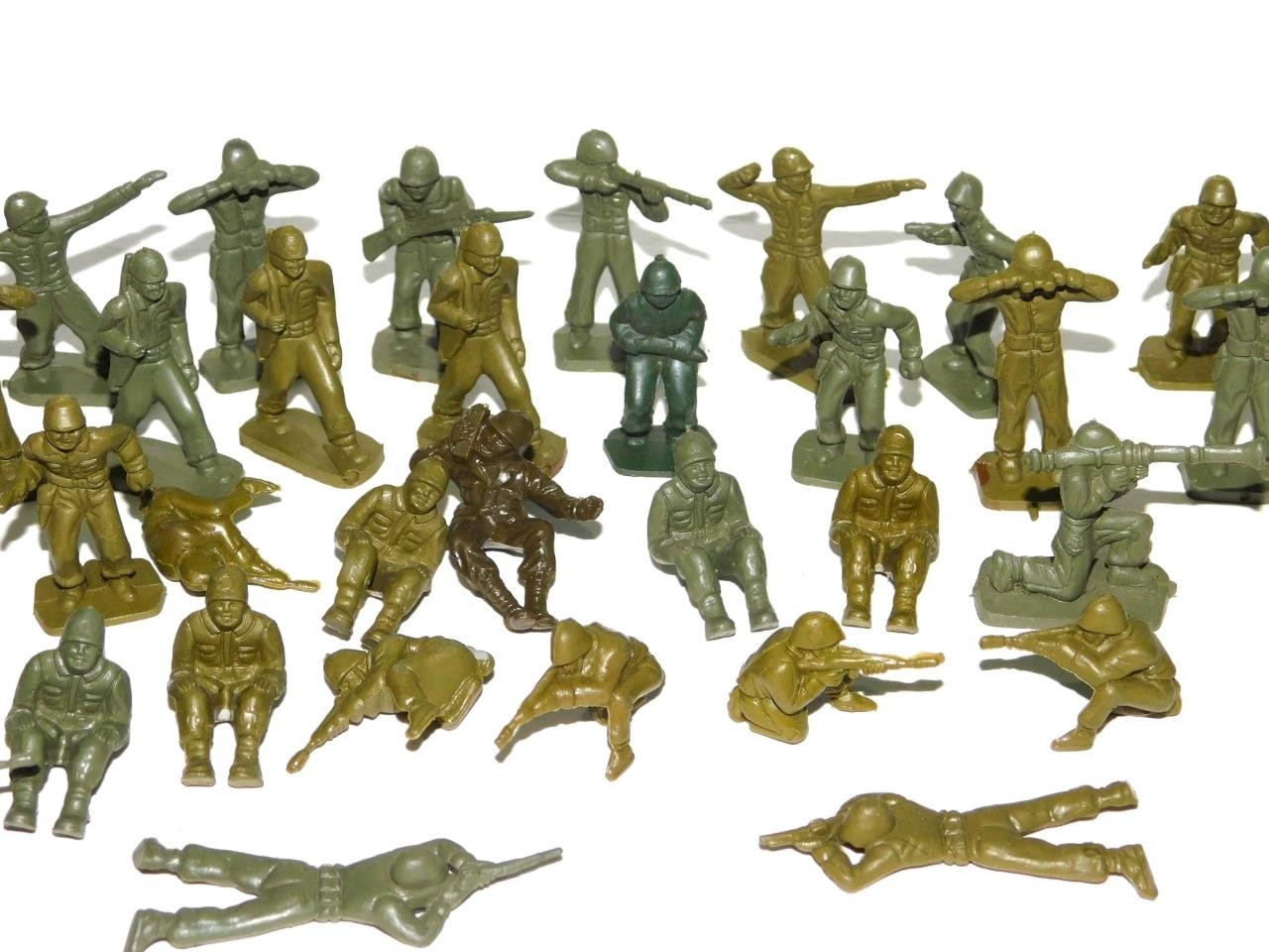 как выглядит Vintage Lot 42 Marx Army Soldiers Green Plastic Toys Infantry 1950s 60s WW2 2" фото