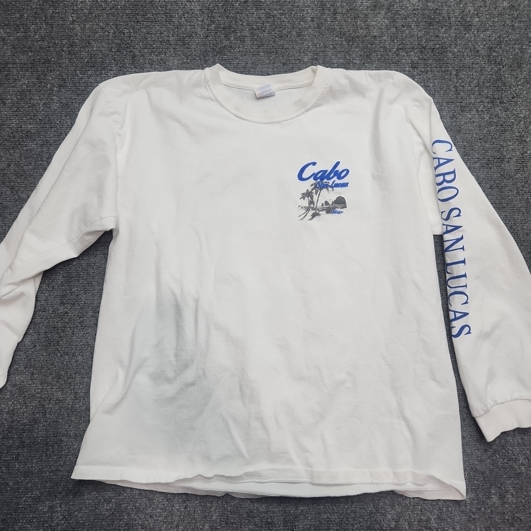 как выглядит Vintage Cabo San Lucas Mexico T Shirt Men X-large White w/ Blue Sleeve Print фото