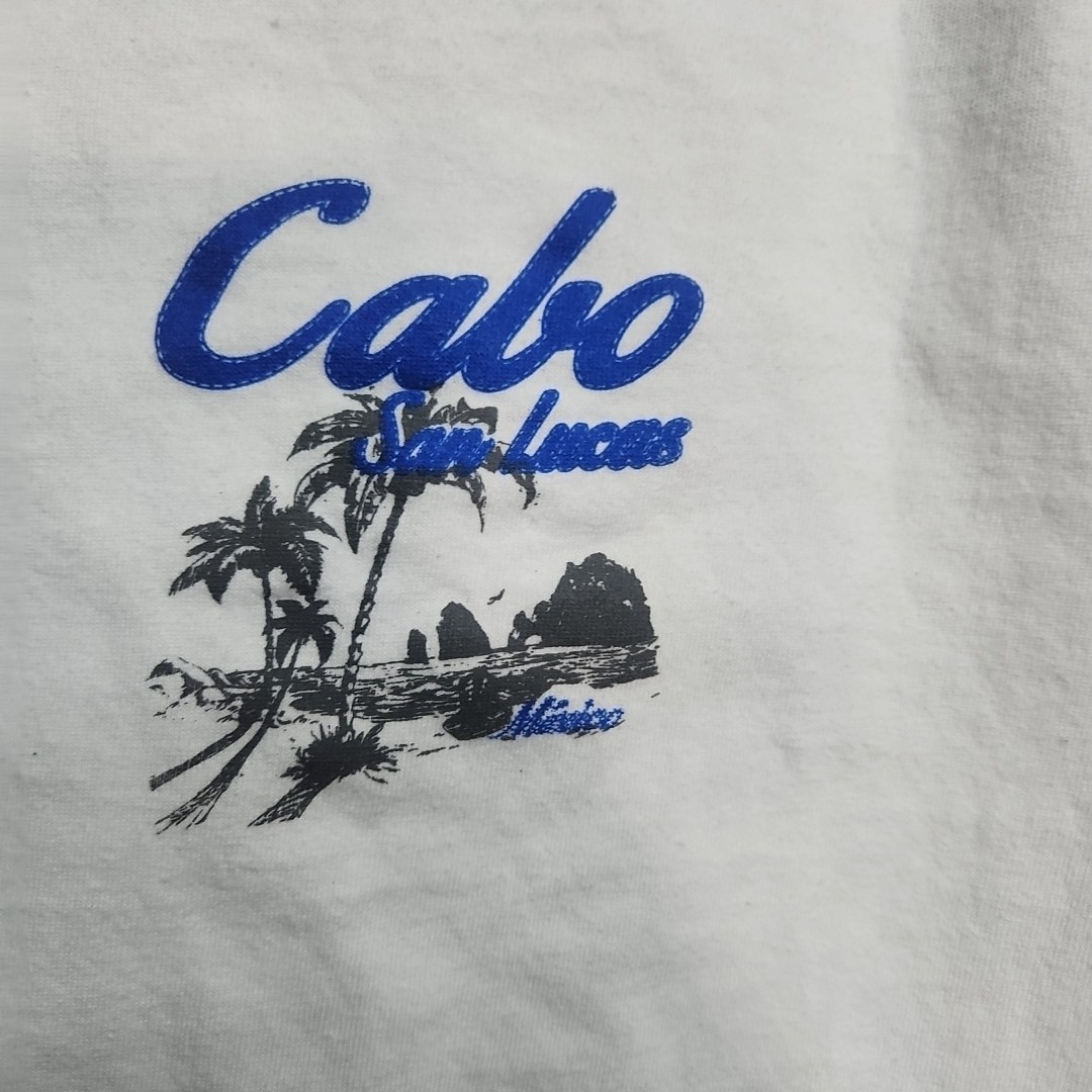 Vintage Cabo San Lucas Mexico T Shirt Men X-large White w/ Blue Sleeve Print