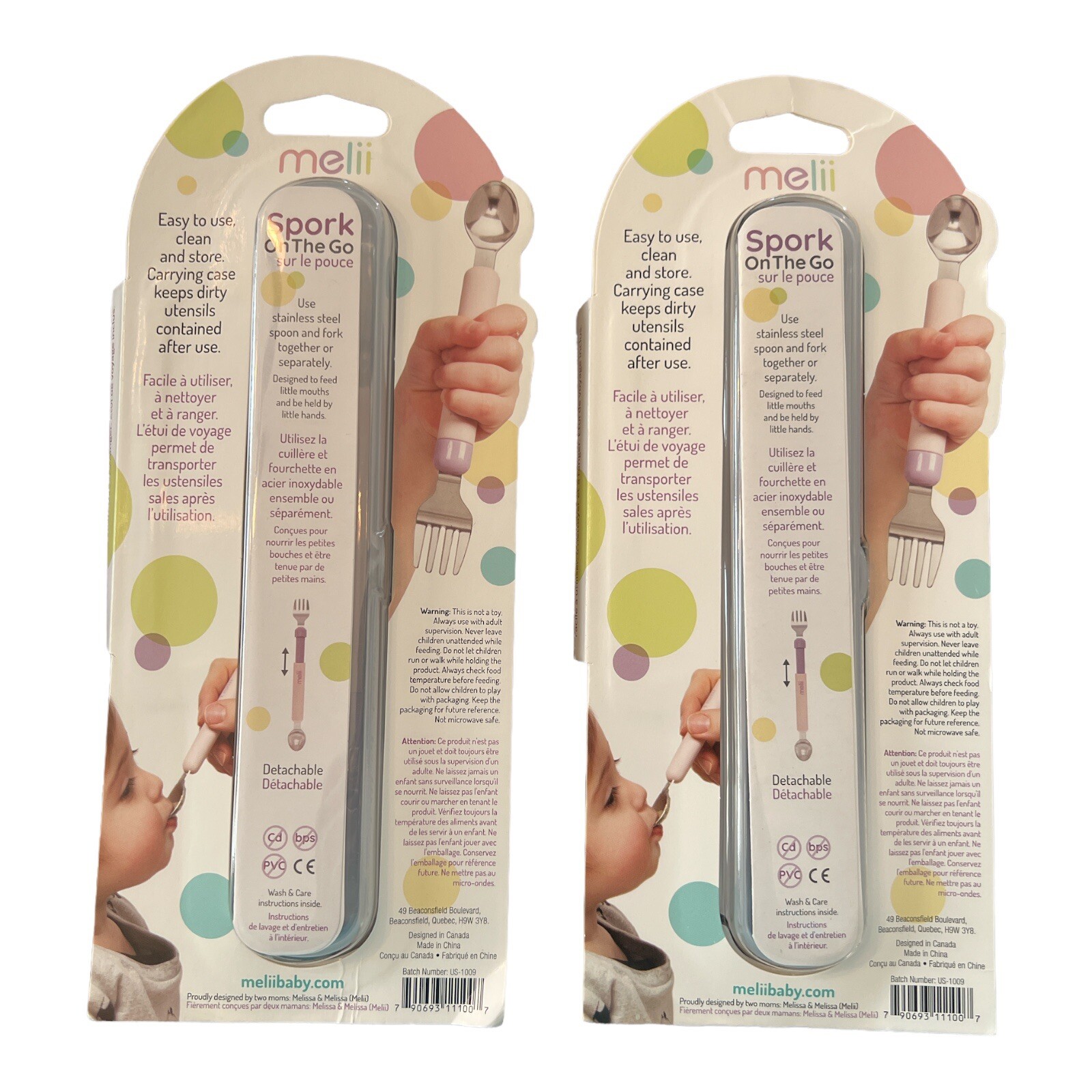Melii Spork On The Go Travel Utensils Pink Set of 2 Baby Gift New