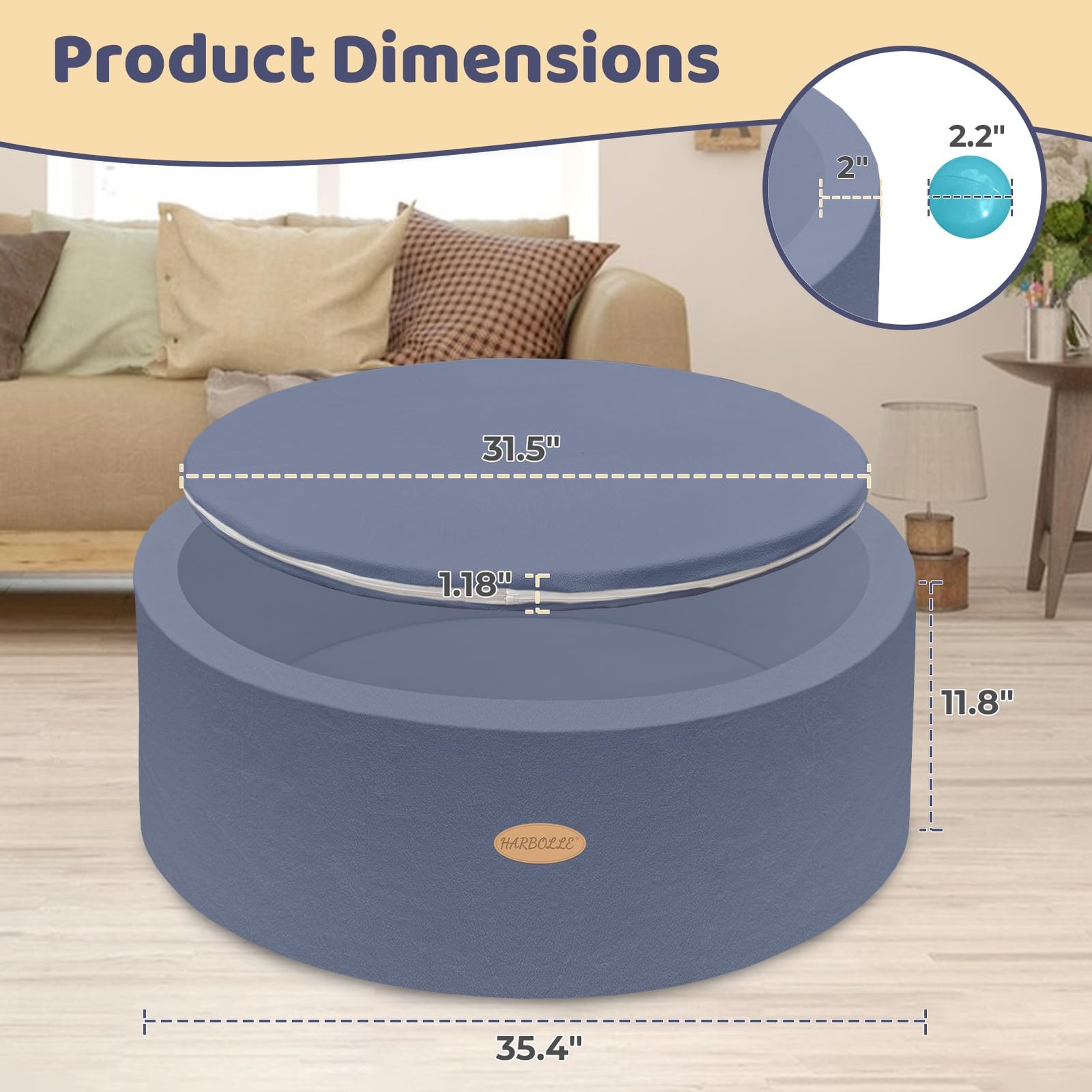 как выглядит HARBOLLE 35.4" Soft Fleece Ball Pit Playpen for Toddlers Babies, Indoor/Outd фото