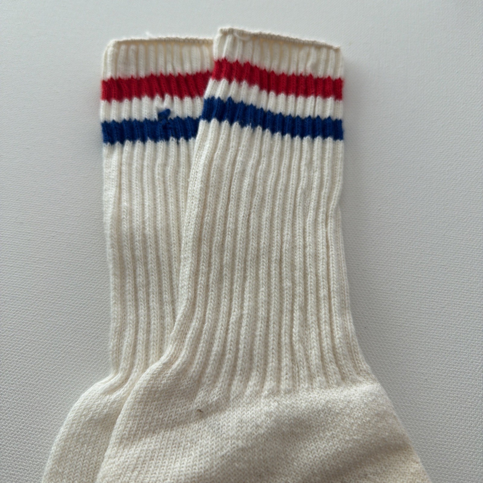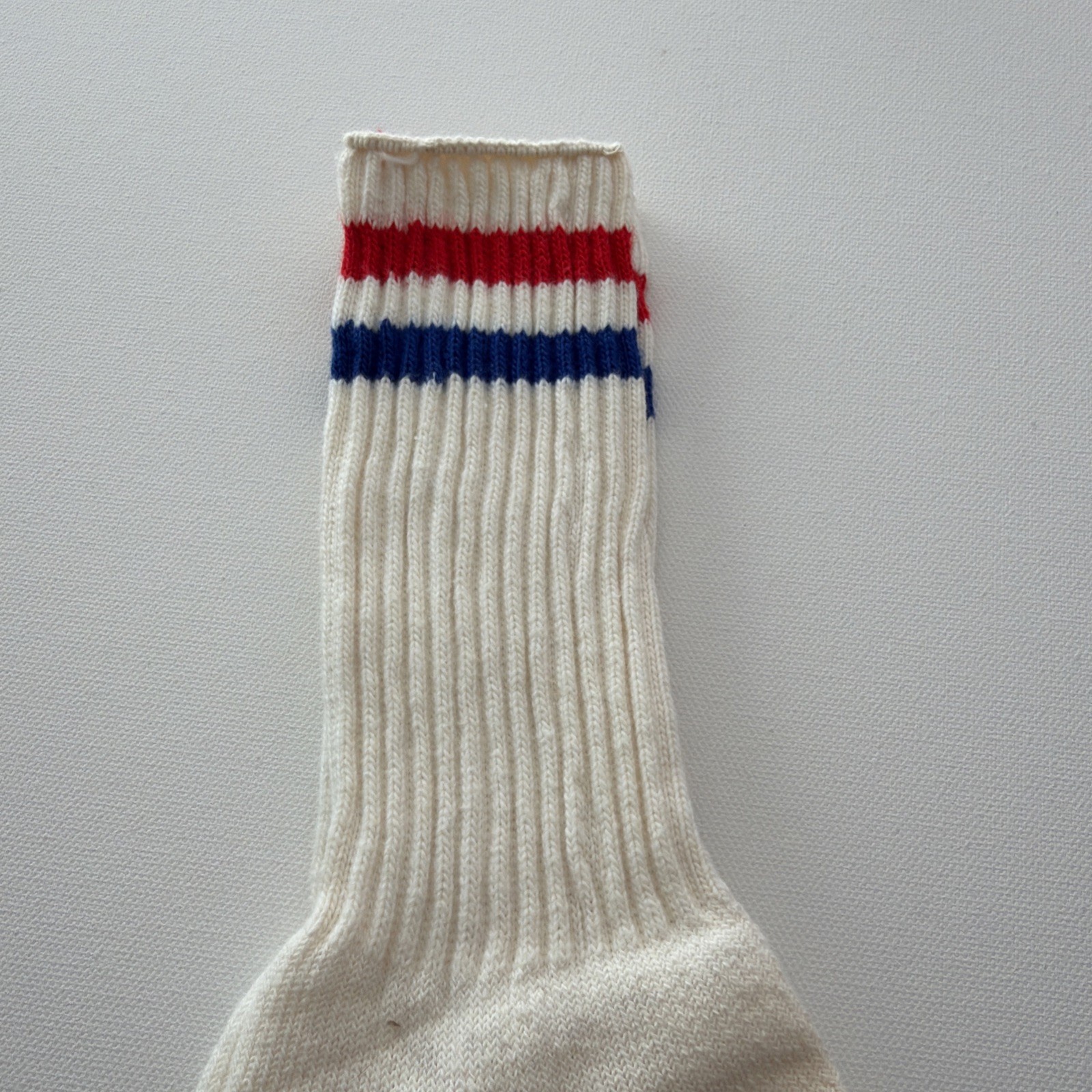 VTG Sock 80's 10-13 Crew Sweat Proof Red Blue Stripe Orlon Cotton USA Sports