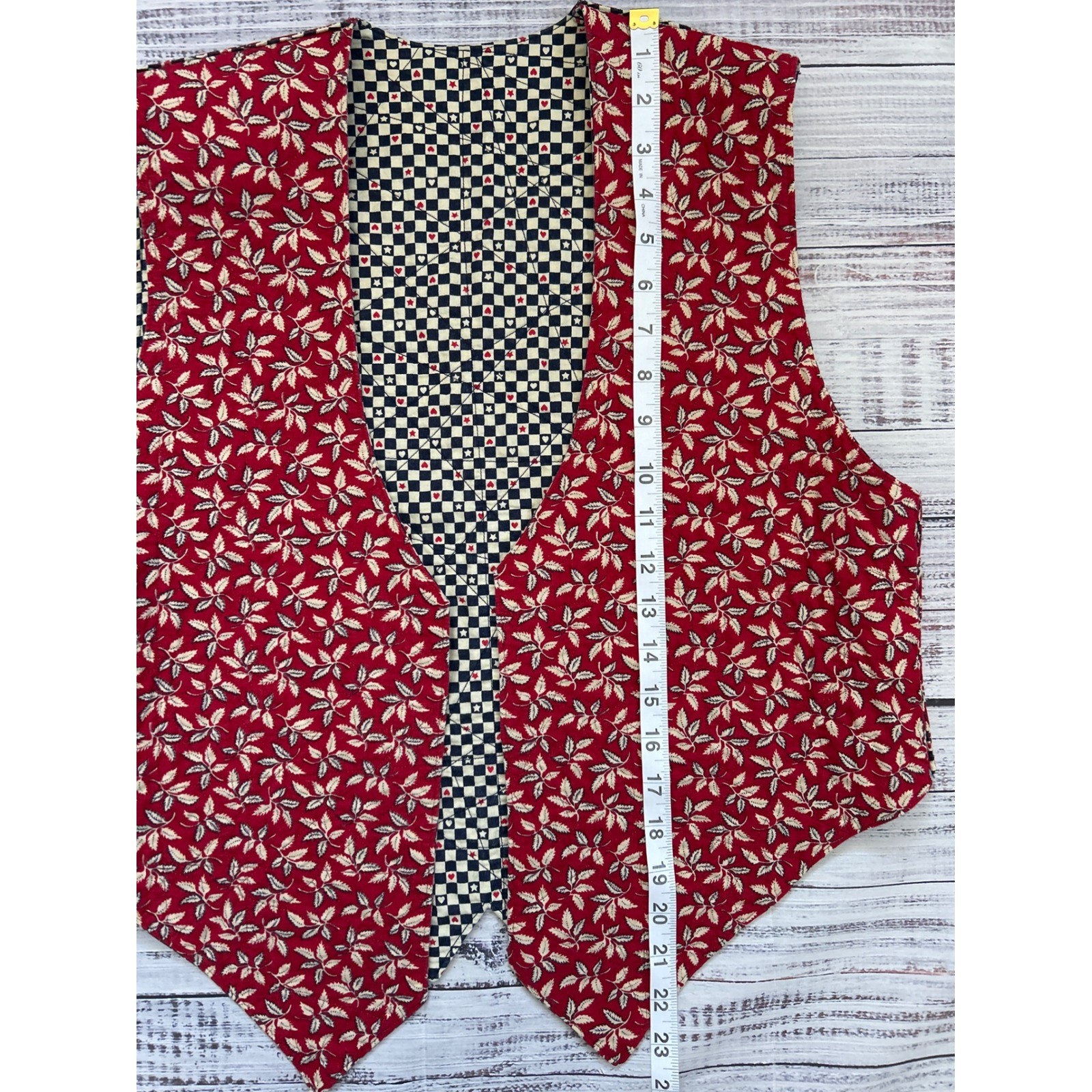 как выглядит Reversible Quilted VTG Vest Country Check Red Floral Hearts Stars Cottage фото