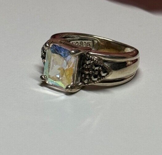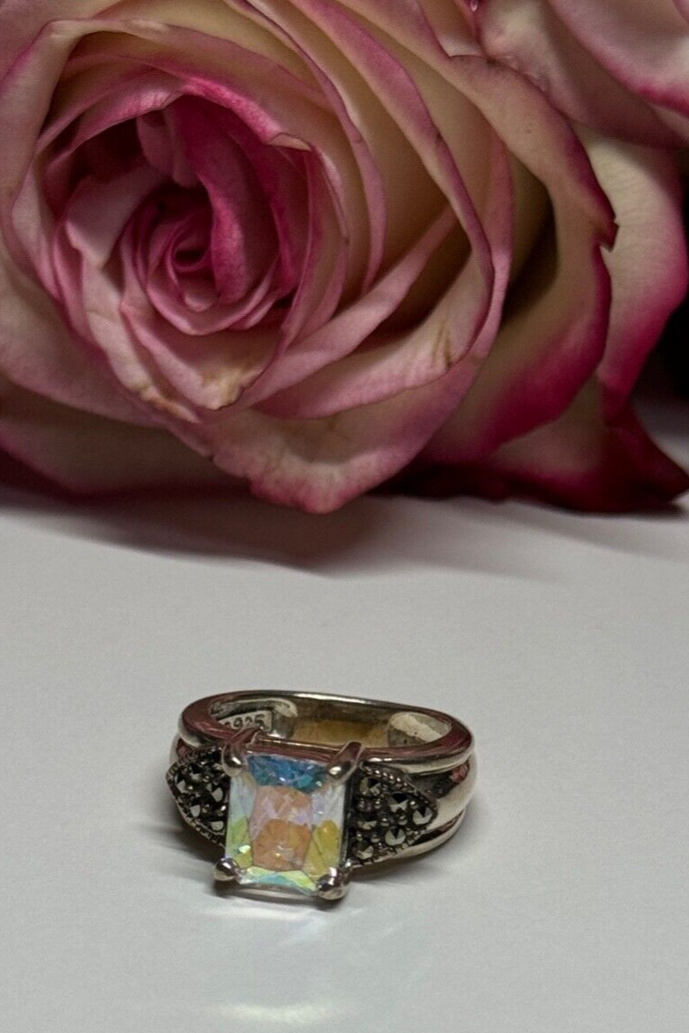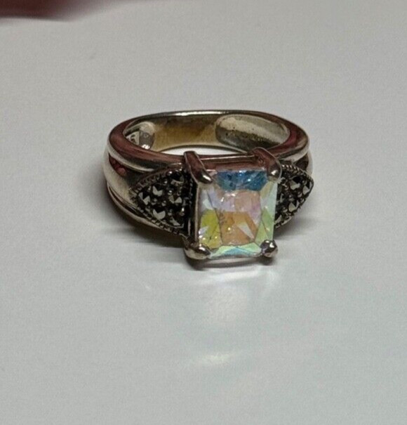 925 Sterling Silver CZ Marcasite Ring Size 6