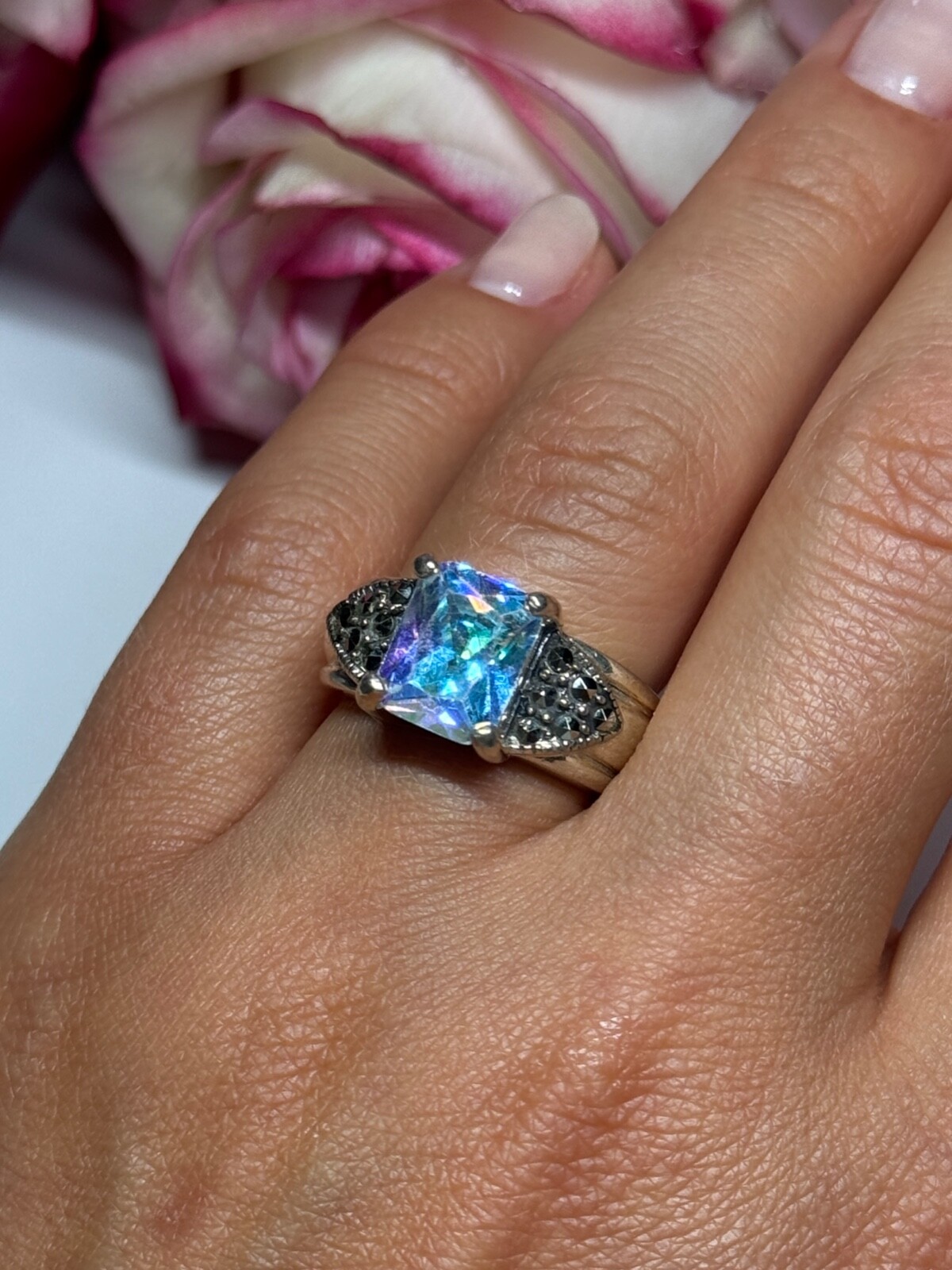 как выглядит 925 Sterling Silver CZ Marcasite Ring Size 6 фото