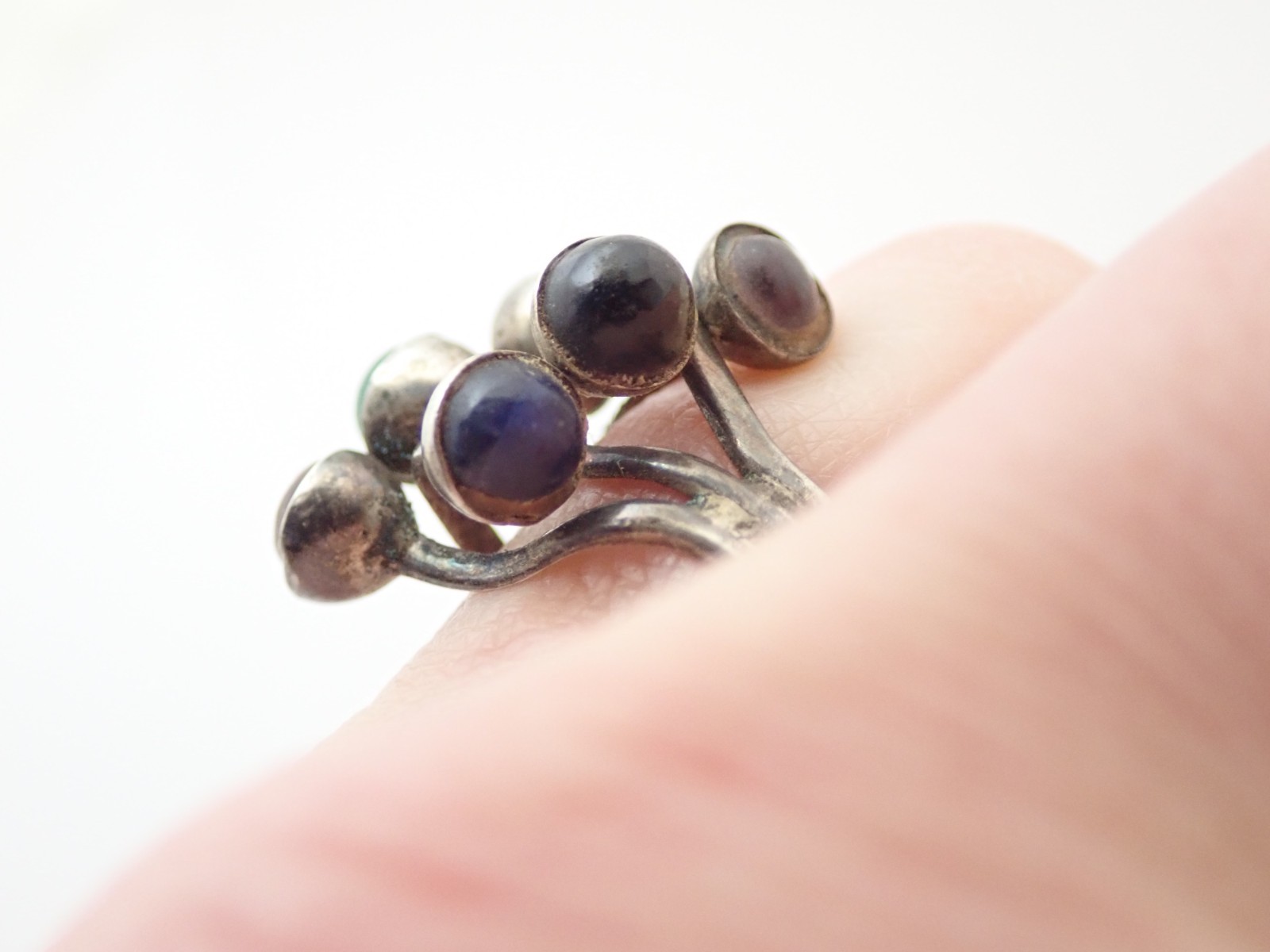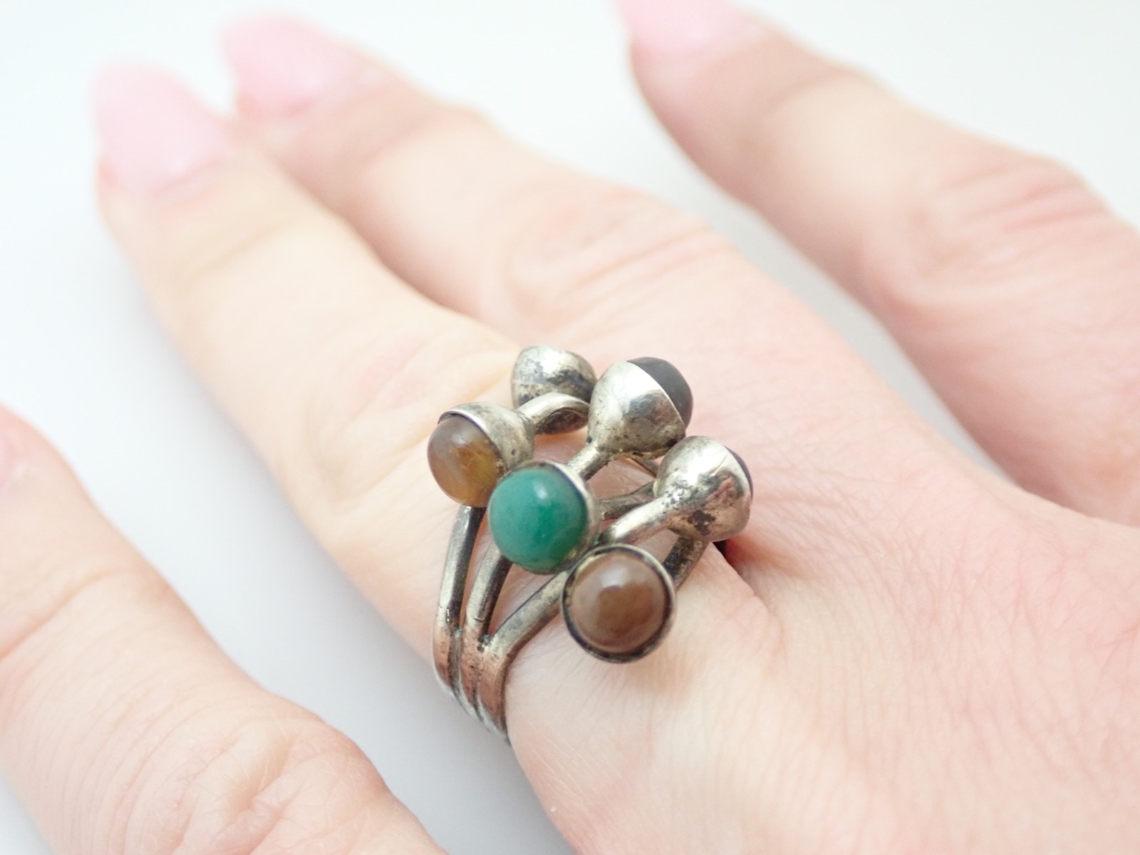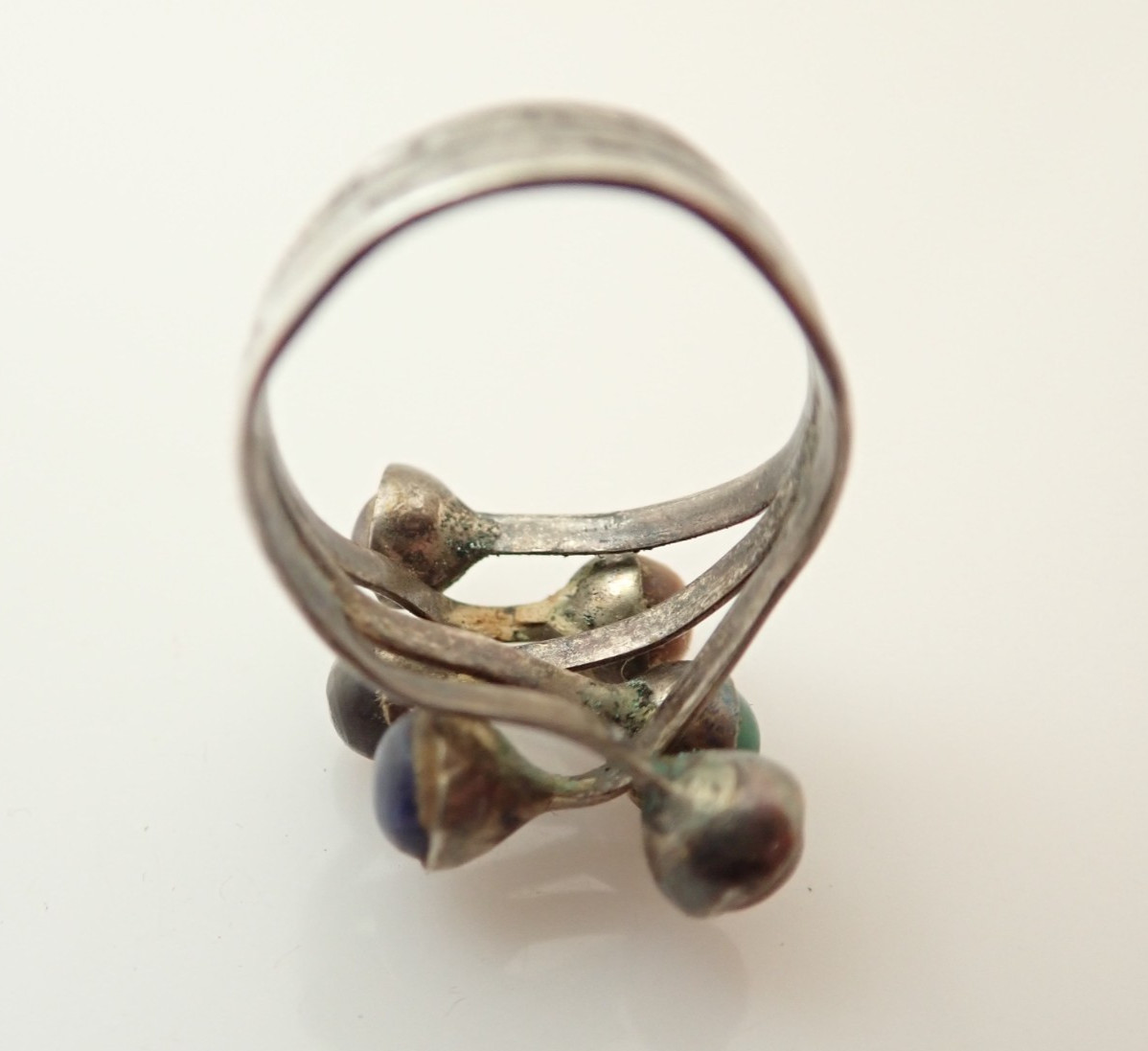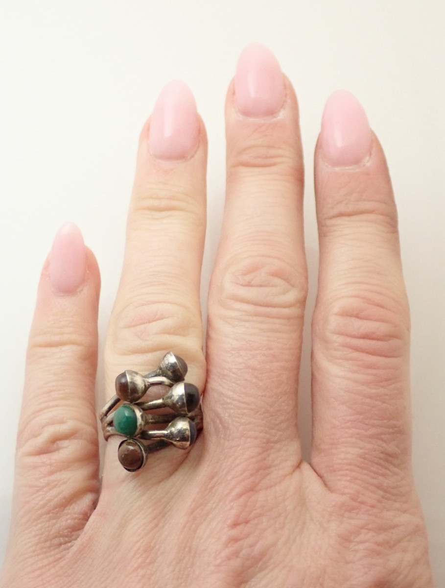 как выглядит Vintage Mexico Taxco Signed Multi Stone Sterling Silver Band Ring Sz 6.5 фото