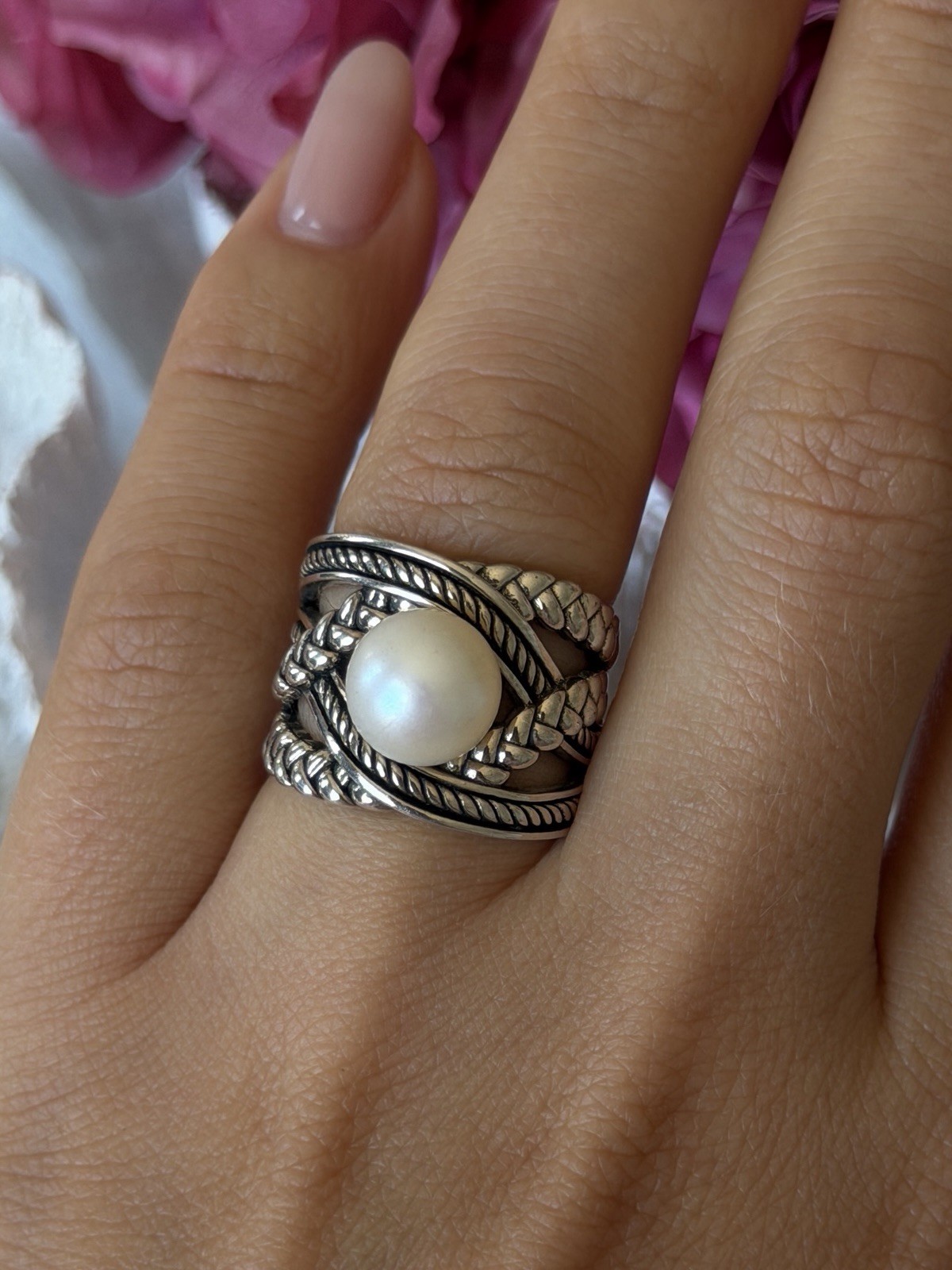 как выглядит 925 Sterling Silver Pearl Ring Size 6 фото