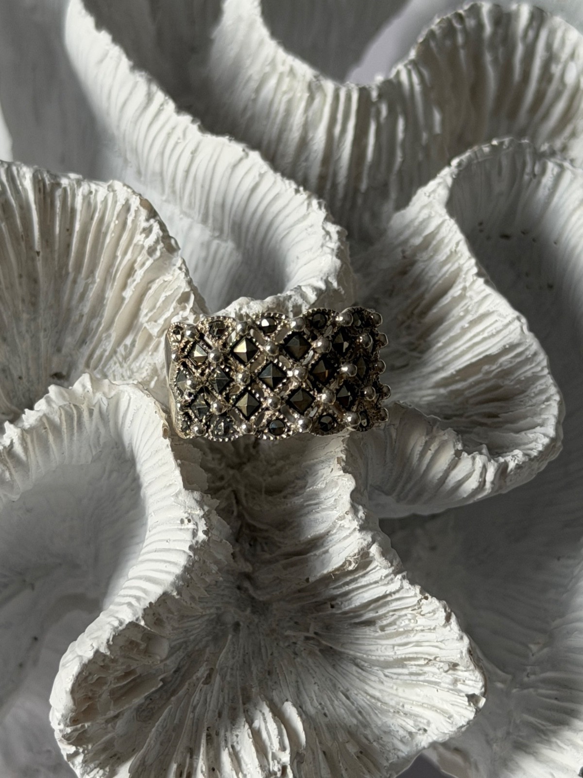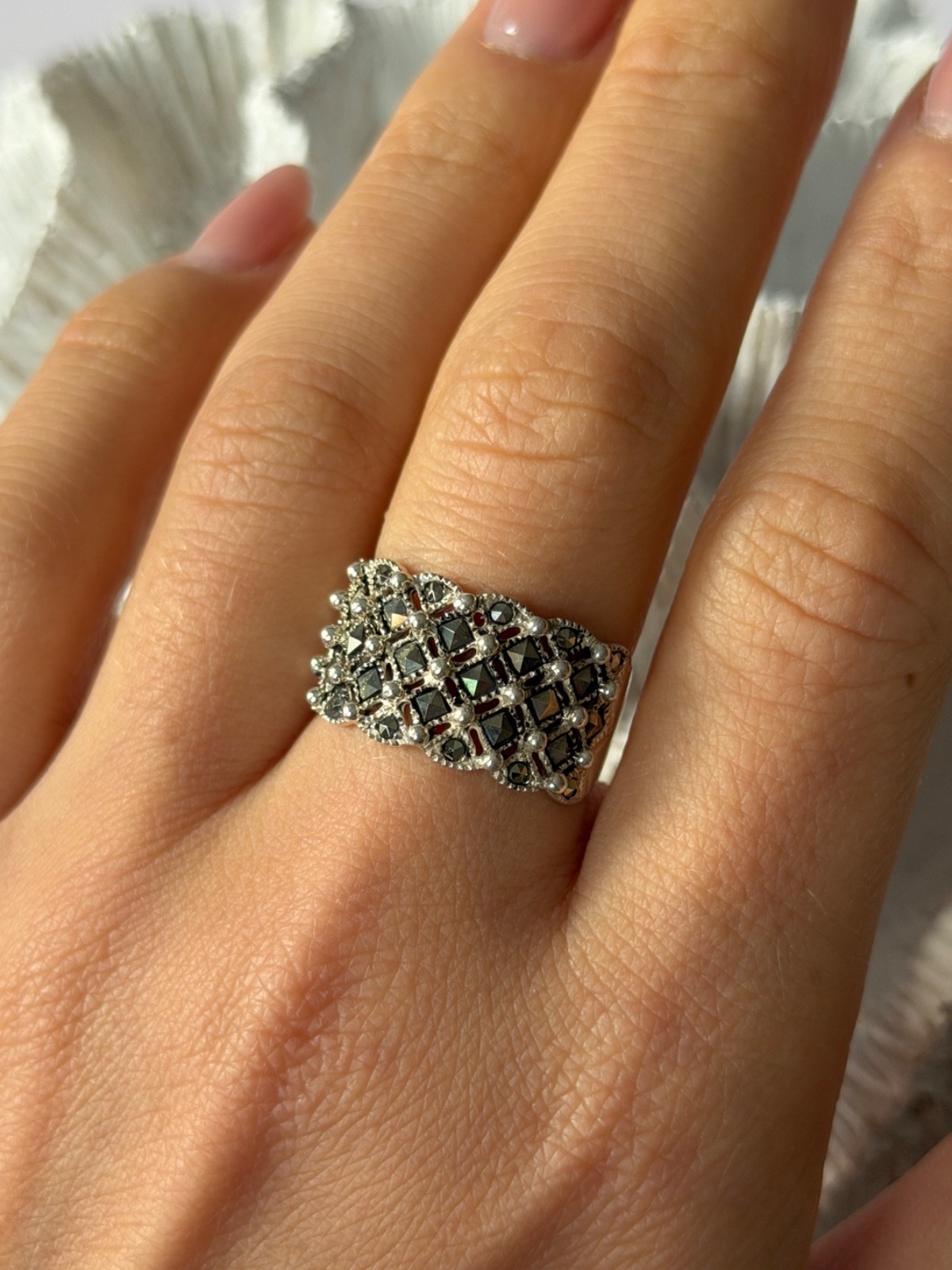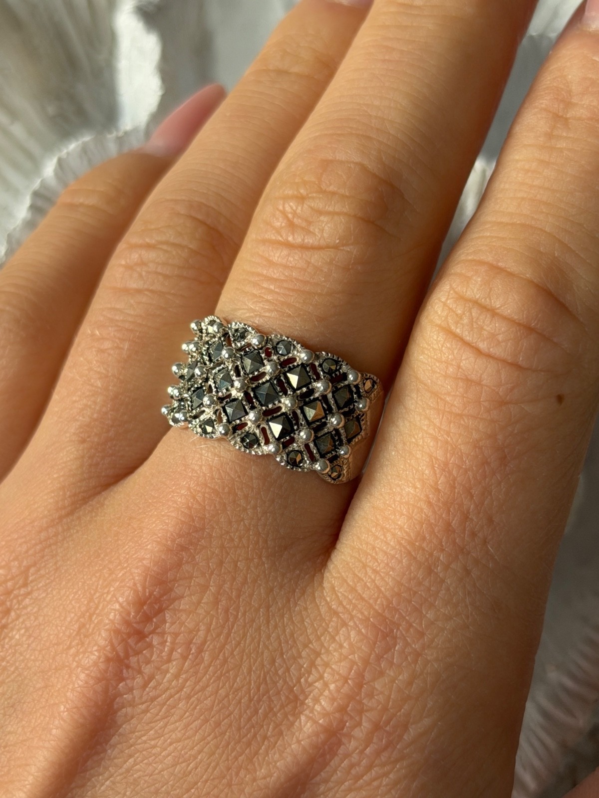 как выглядит Vintage 925 Sterling Silver Marcasite Ring Size 8 фото