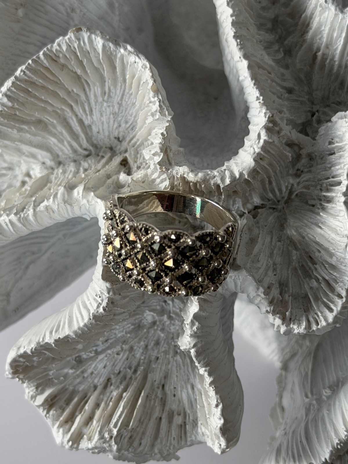 Vintage 925 Sterling Silver Marcasite Ring Size 8