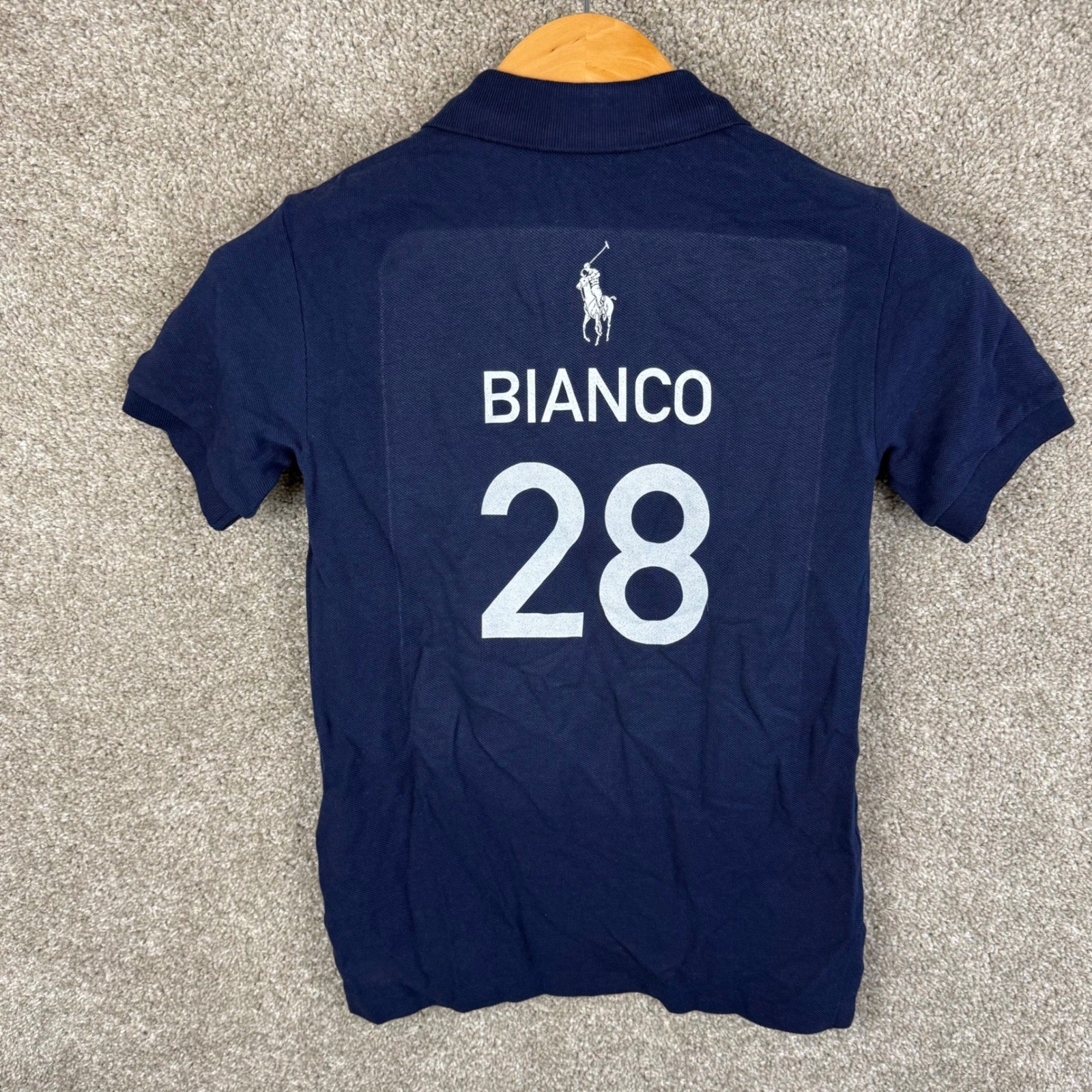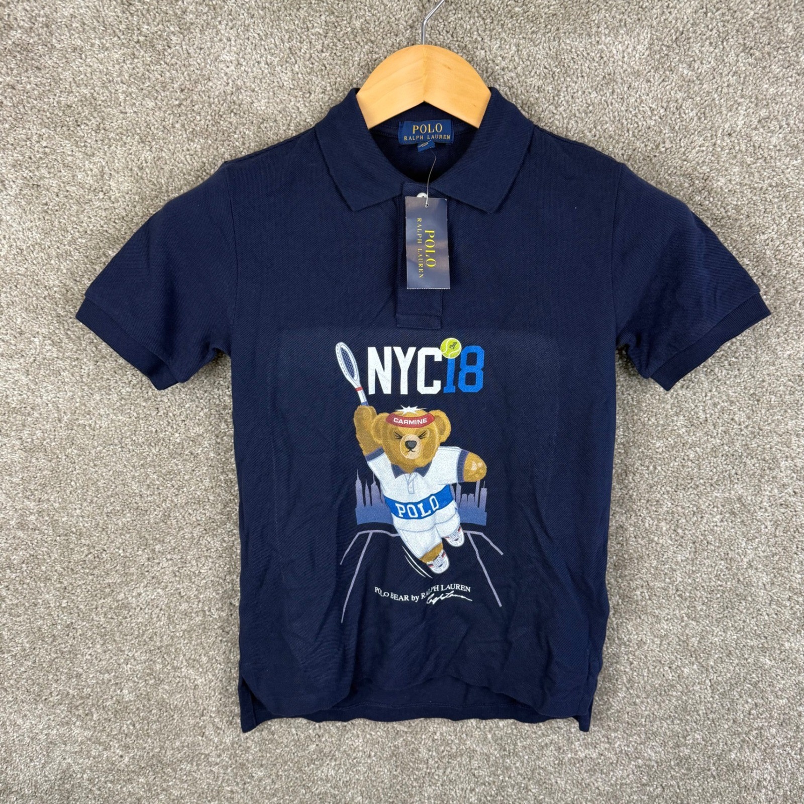 Polo Ralph Lauren Boys NYC Bianco 28 Tennis Bear Polo Shirt Size Small 8 NEW