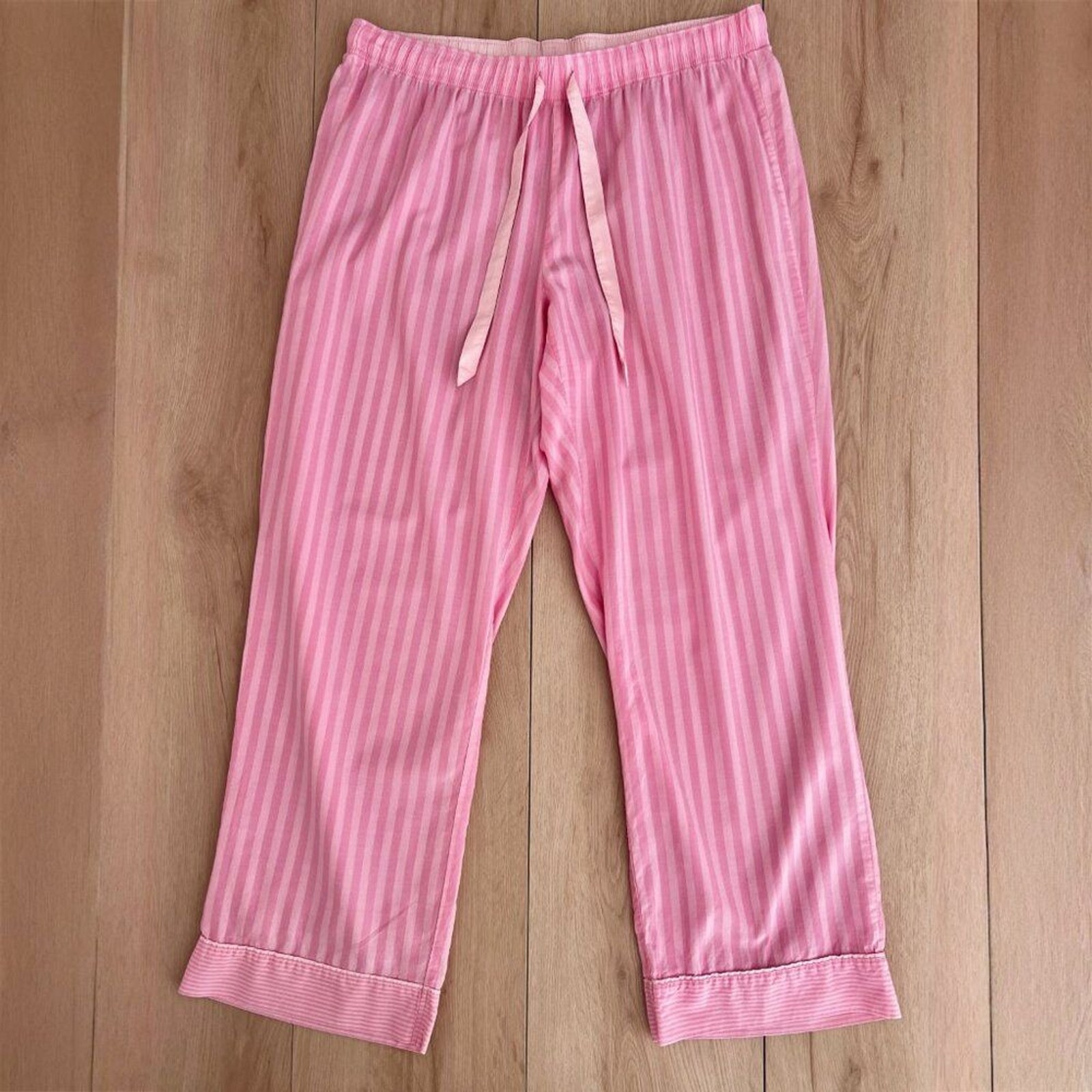 как выглядит Victorias Secret Iconic Pink Stripe Cotton Pajama Set Size Large 2016 Version фото