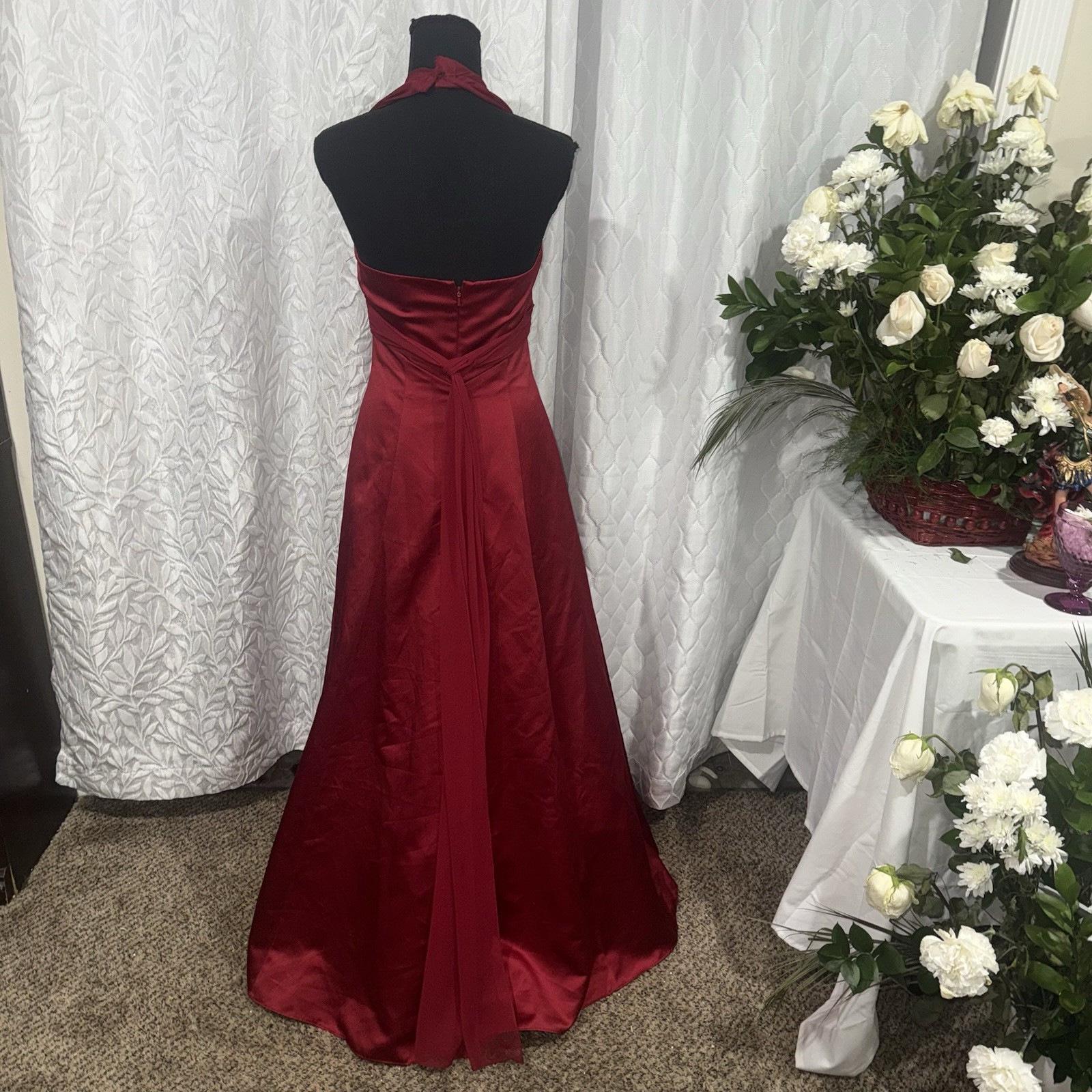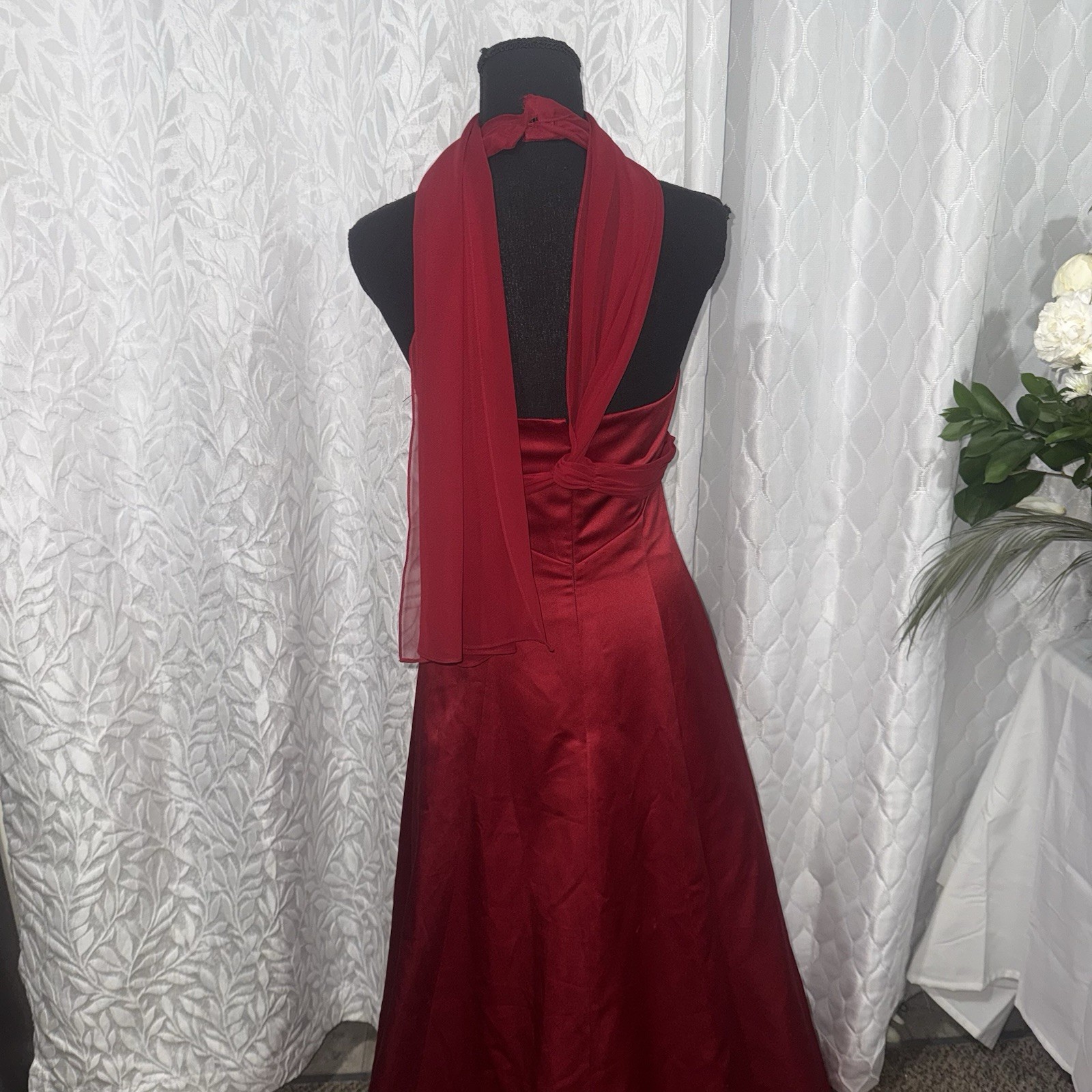 Red Davids Bridal Size 4 Long Formal Prom Ball Gown Zip Up Dress Halter Top maxi