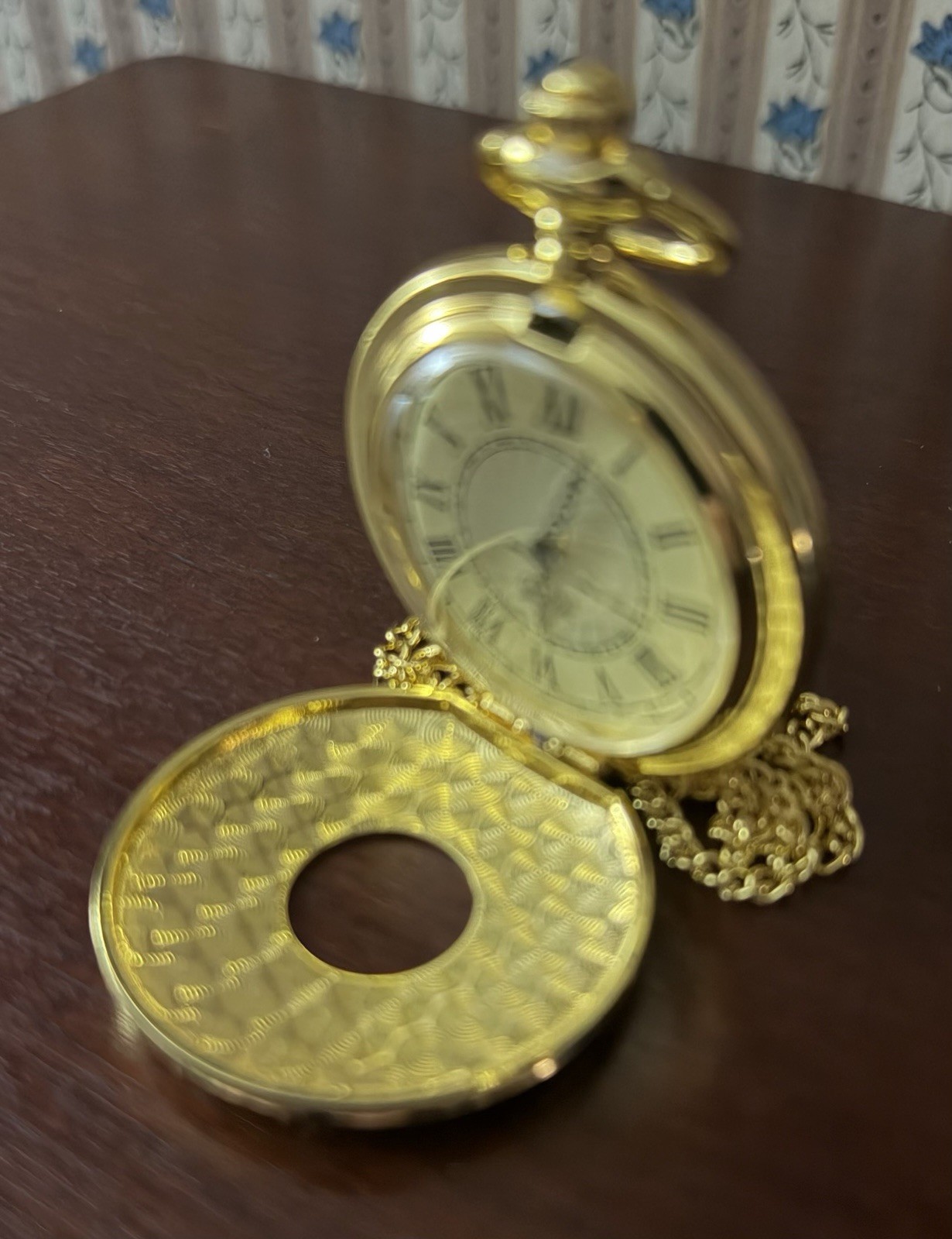 как выглядит Beautiful Golden Quartz Pocket Watch фото