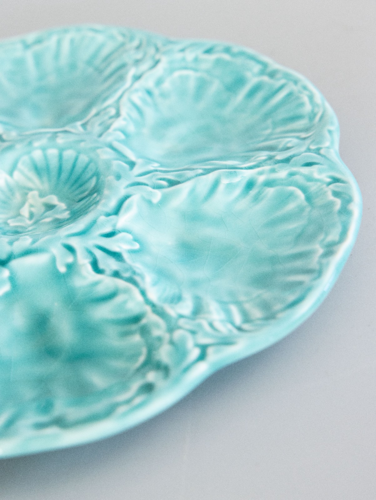 Vintage French Gien Turquoise Aqua Blue-Green Majolica Oyster Plate, circa 1950