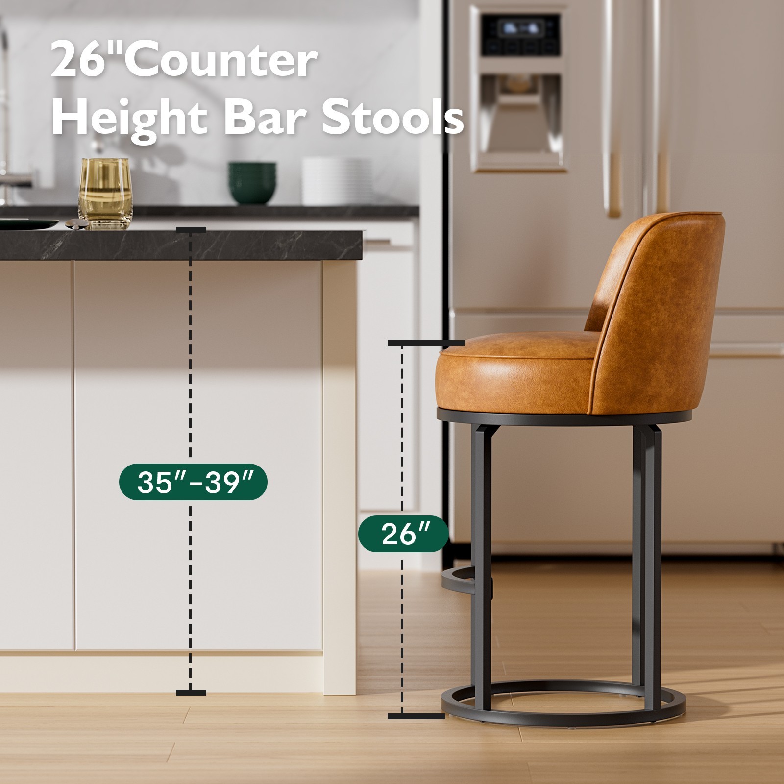 26 Swivel Counter Height Bar Stools with Back Set of 2 PU Leather Bar Chairs