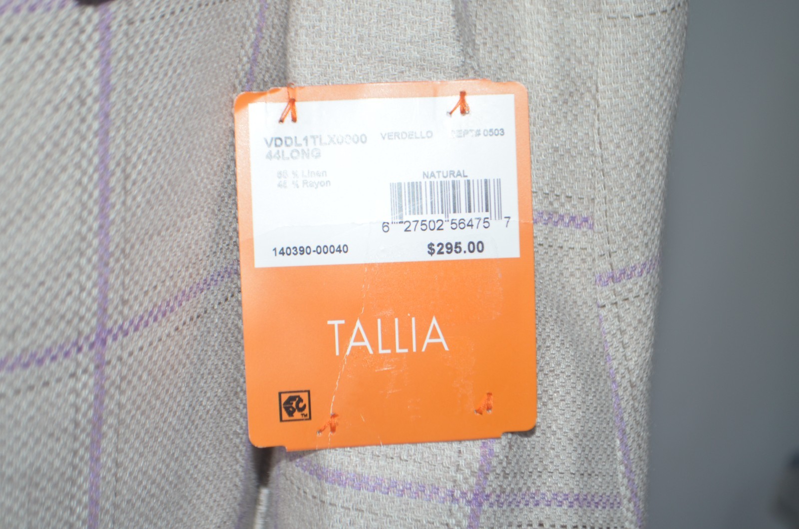 как выглядит NWT TALLIA Linen Blend Blue Tan Purple Windowpane Sport Coat Sz 44L фото