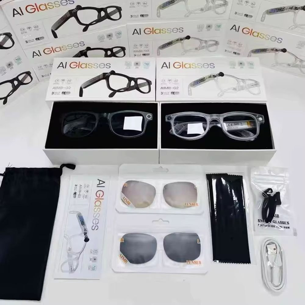 как выглядит AI Smart Glasses with Camera, Mic Speakers Extra Lenses Included New BLACK фото