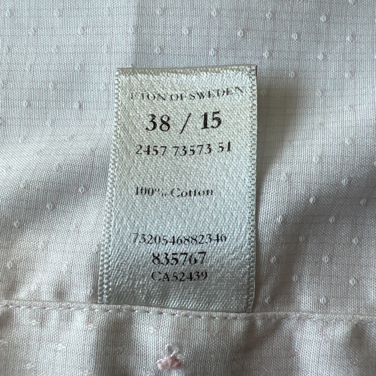 ETON Dress Shirt Men's 15 38 Slim Light Pink Textured 100 Cotton Long Sleeve