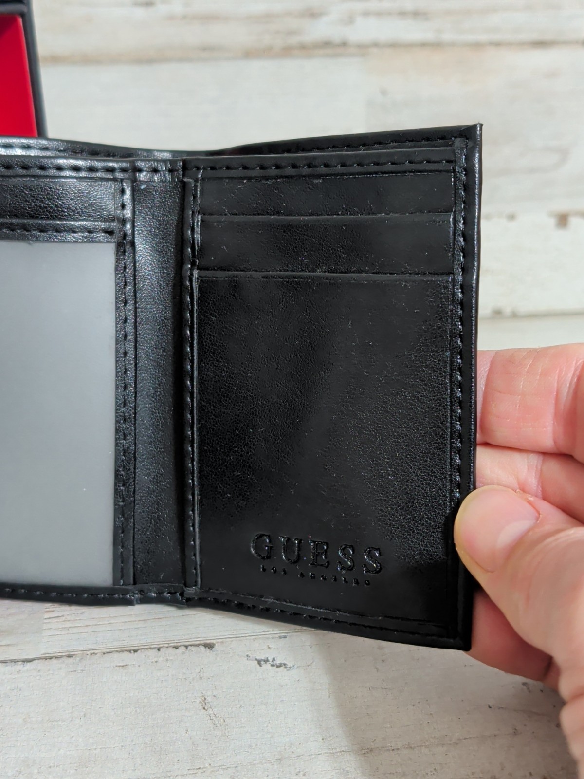 как выглядит Guess Mens Trifold Wallet Black Leather RFID 31GO110038 - NEW фото