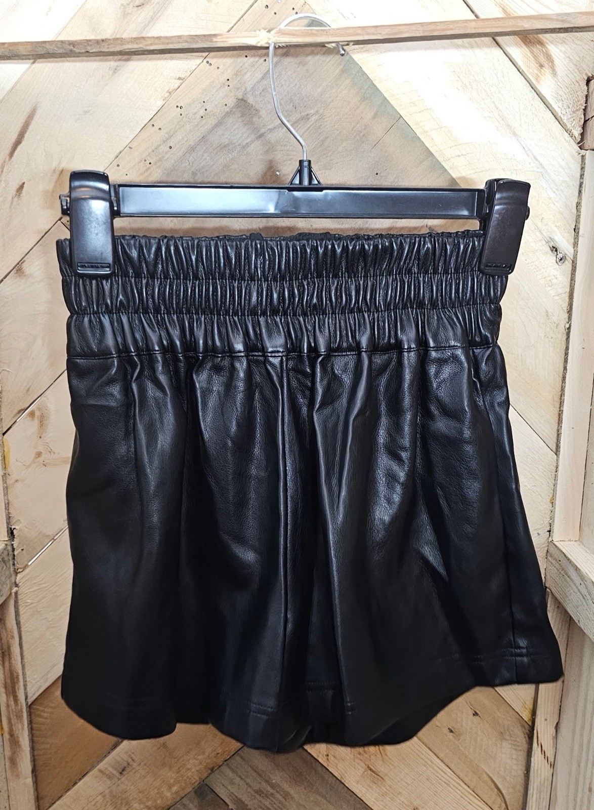как выглядит Vintage Havanna Black Leather Shorts Size Small фото