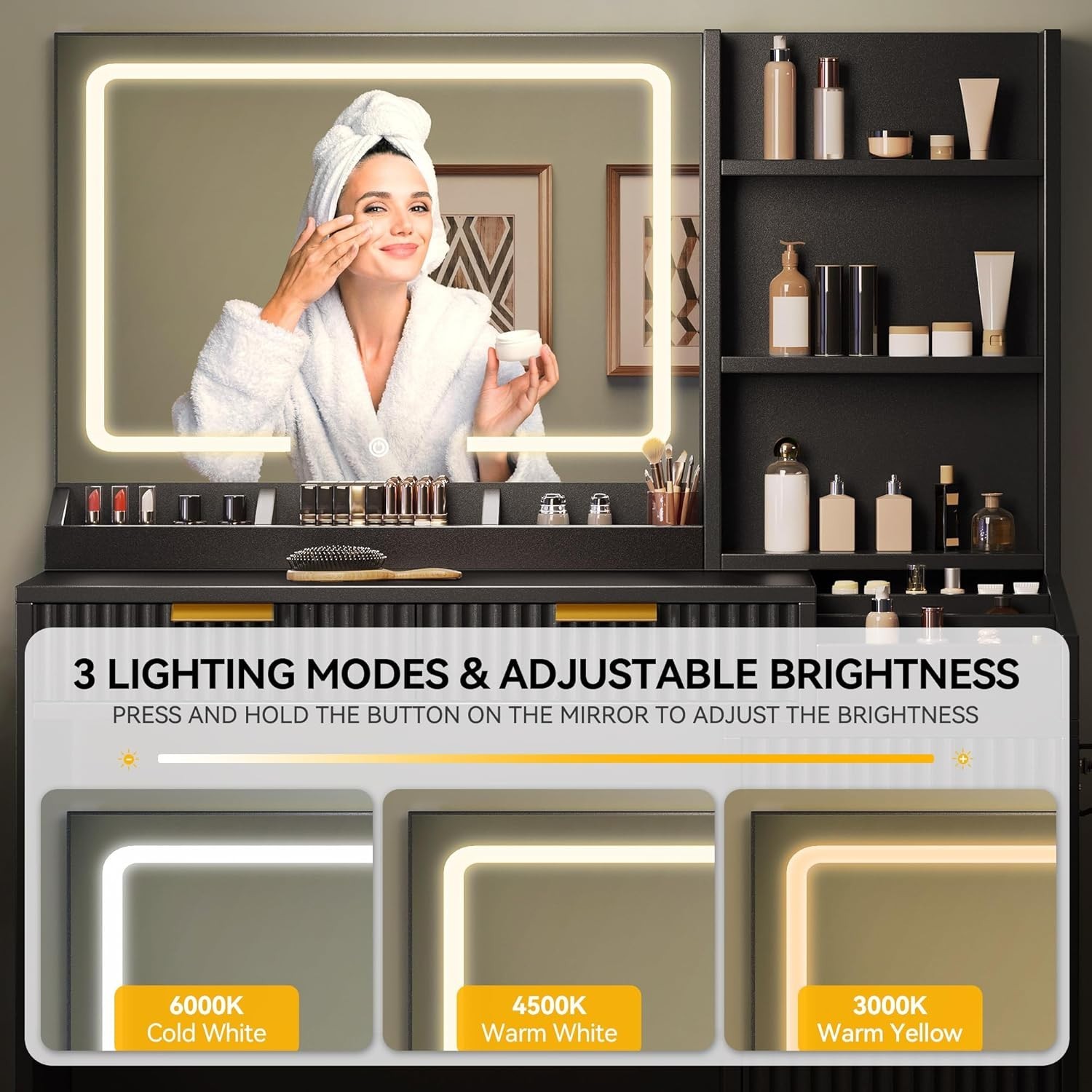 как выглядит Fluted Vanity Desk with Mirror and Lights in 3 Modes and Charging Station фото