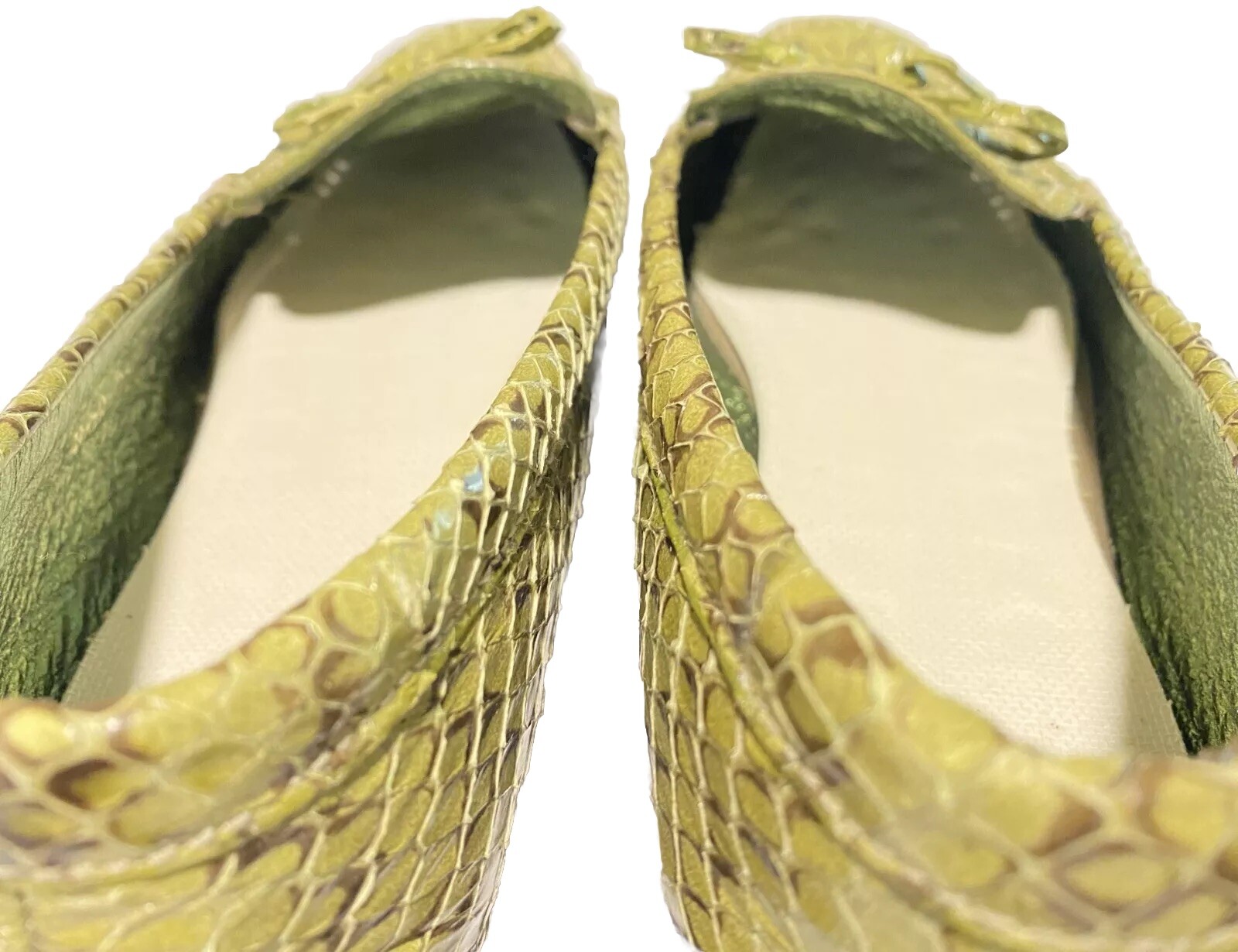 Prada Snakeskin Leather Driving Loafers Bow Green Women Shoes 36 US 6 Italy