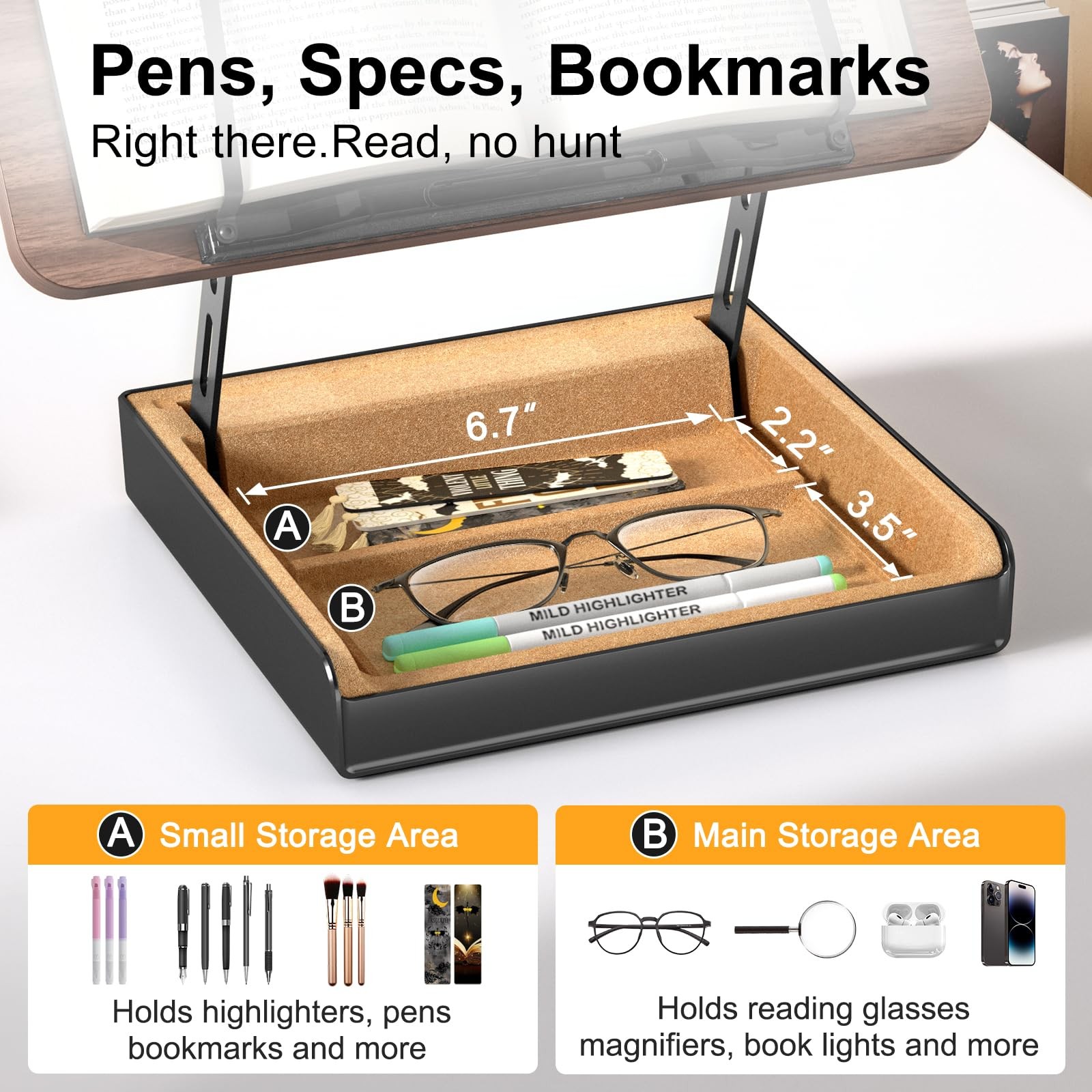 Book Stand with Storage, Book Holder for Reading Hands Free, Wooden Cookbook ...