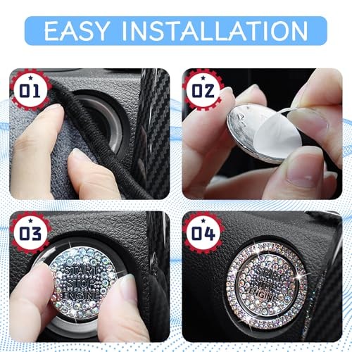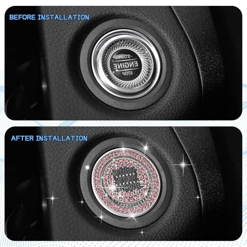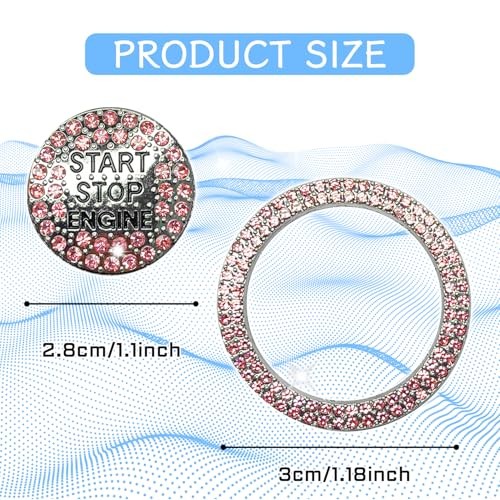 2PCS Rhinestone Push Start Button Cover Bling Car Accessories for Women, Pink